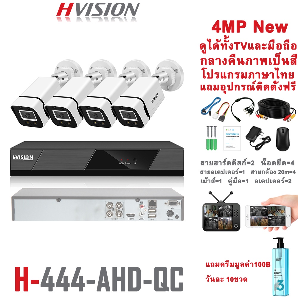HVISION ชุดกล้องวงจรปิด 4MP 4CH รุ่น cctv camera kit ระบบ AHD กล้องวงจร กลางคืนภาพเป็นสี แถมอุปกรณ์ติดตั้ง ราคาถูกสุด