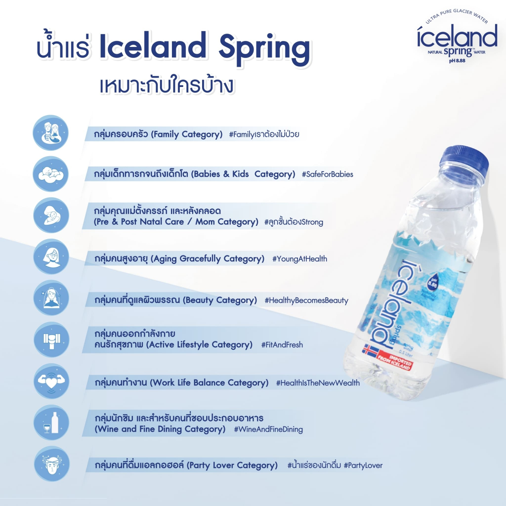 Iceland Spring pH 8.88 เป็นน้ำแร่บริสุทธิ์ ที่มีความด่างธรรมชาติ