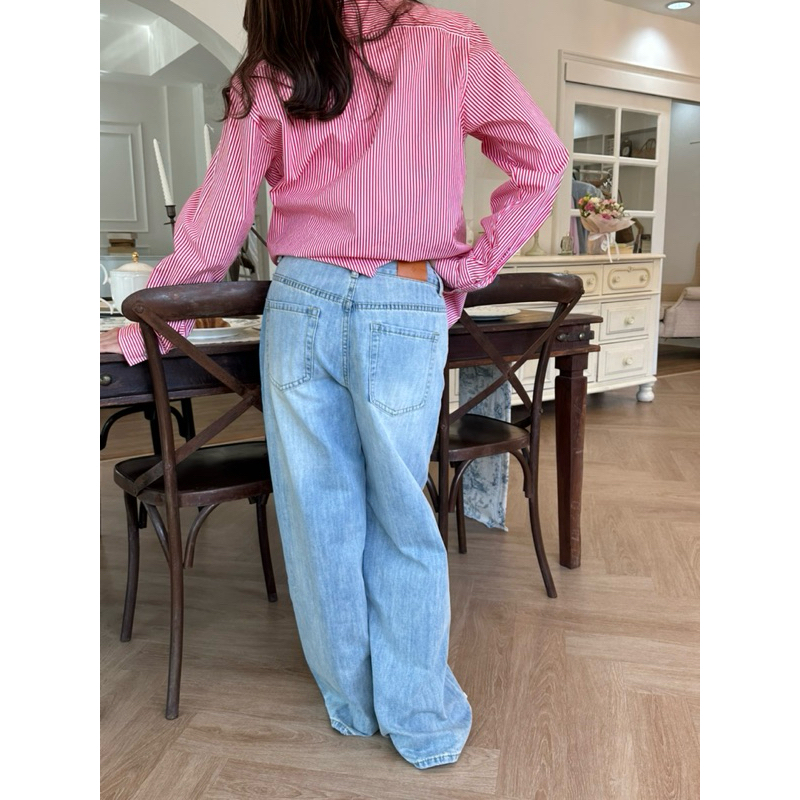 กางเกงยีนส์เป็นทรงกระบอกกลาง เอวกลาง แต่จะใส่เป็นเอวสูงก็ได้ ให้วัดตำแหน่งเอวให้ตรงกับที่ต้องการเลยน้า