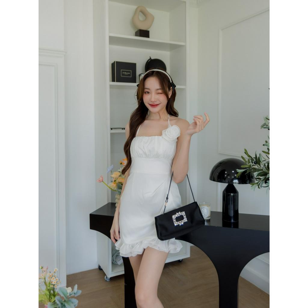 มินิเดรส+เข็มกลัด จัดเต็มกับความ Luxury ซ่อนเปรี้ยวสุดฮอต น้องเป็นผ้า Polyester เล่นกับแสงเวออร์ ถ่ายมุมมืดยังไงก็ปัง! มาพร้อมกับดีเทลจับจีบเก๋ๆที่อกและสะโพก งานสายเดี่ยวผูกคอ มีสม็อคและซิปหลัง ซับในเย็บติด งานระบายผ้า Chiffon 2ชั้นที่ชายกระโปรง ติดคู่กับเข็มกลัดกุหลาบสุดคิ้วท์ เป็นลุค After party ที่ลงตัวมาก!