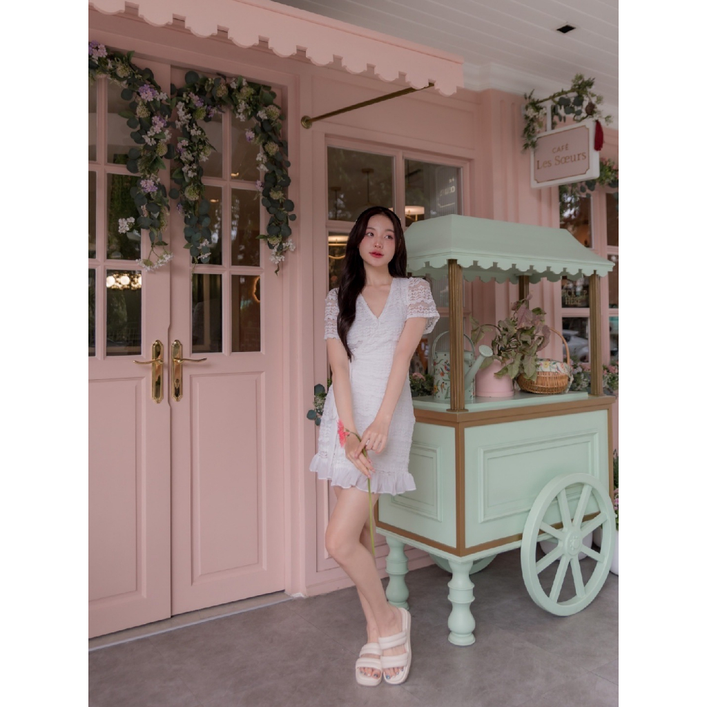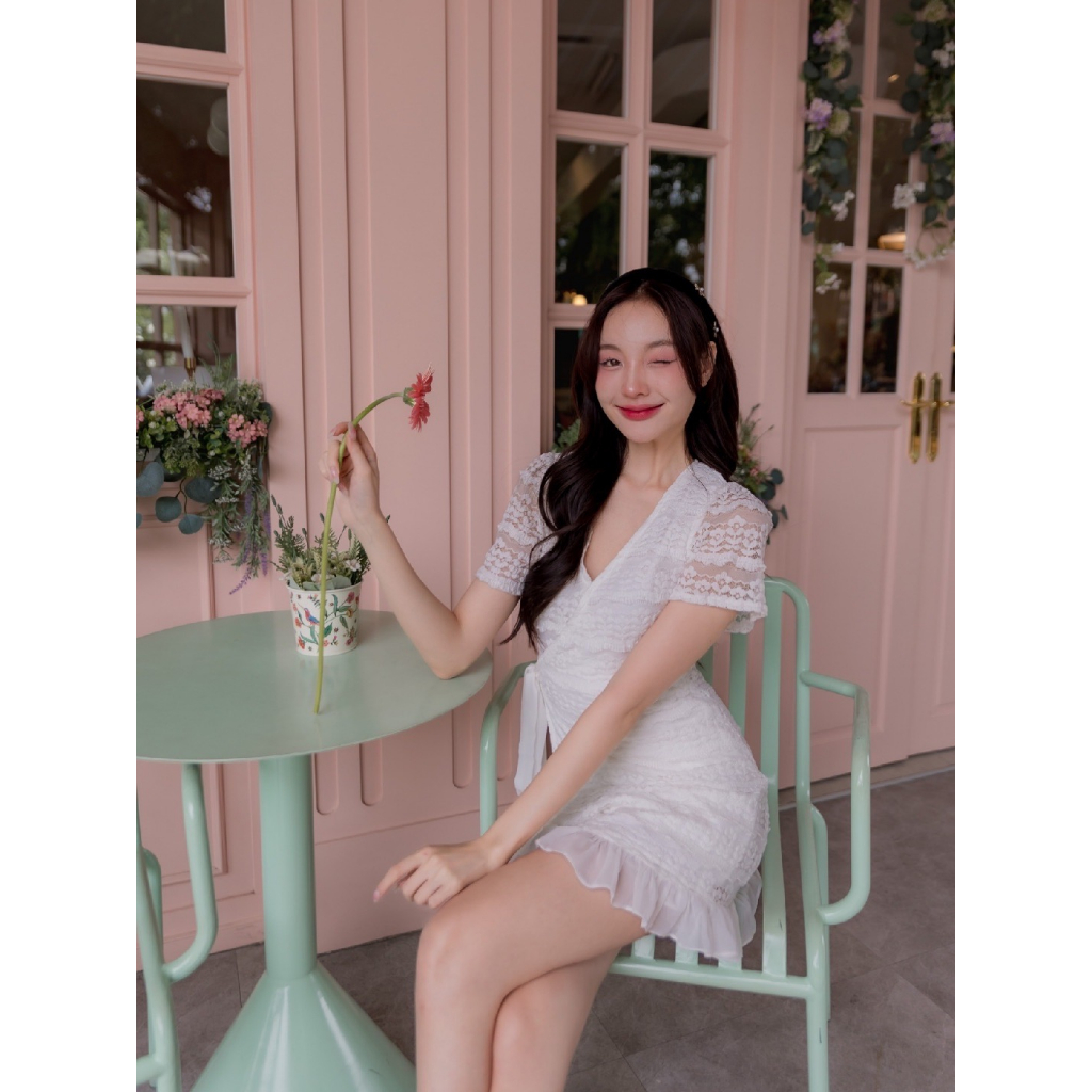 Casual แบบดูดี มีระดับ ด้วยมินิเดรสผ้าลูกไม้เนื้อนุ่มม แพทเทิร์นเรียบแต่แฝงไปด้วยความเก๋ มีเสน่ห์ชวนหลงใหล ชีเป็นงานแบบผูกไขว้ ผูกโบว์ได้ที่ด้านข้าง ตัวซิปซ่อนอยู่ด้านใน ไม่เกะกะสายตา งานคอวี ชายกระโปรงแต่งระบายพริ้วเบาๆ ที่ปกเป็นงานกระดุมแป๊กกันโป๊ มีซับใน ใส่ใจภาพลักษณ์แบบ10/10! ไม่มีคือพลาดเวอร์