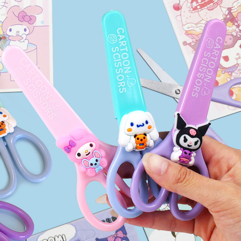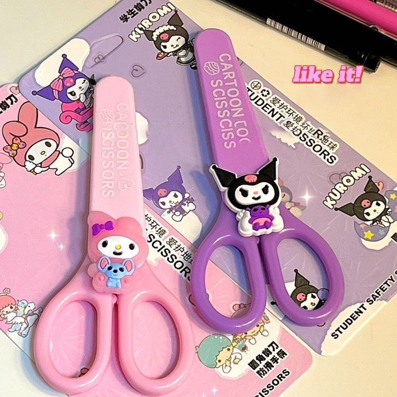 Kawaii Sanrio กรรไกรความปลอดภัยพร ้ อมฝาครอบ Kuromi Hello Kitty My Melody กรรไกรน ่ ารัก DIY ชุดตัดโรงเรียนเครื ่ องเขียนอุปกรณ ์