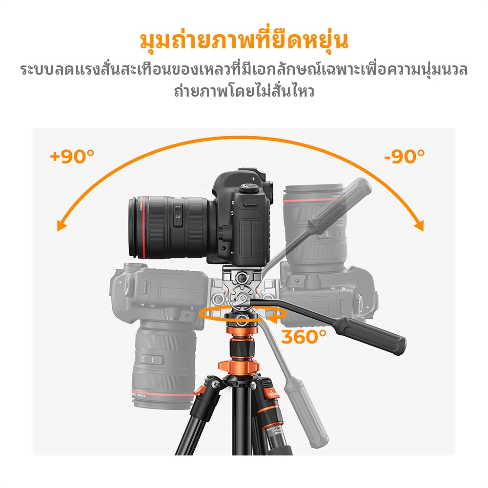 ตรวจสอบก่อนใช้งาน: ตรวจสอบให้แน่ใจว่าล็อคและสกรูทั้งหมดแน่นหนาเพื่อให้ขาตั้งกล้องมีเสถียรภาพ