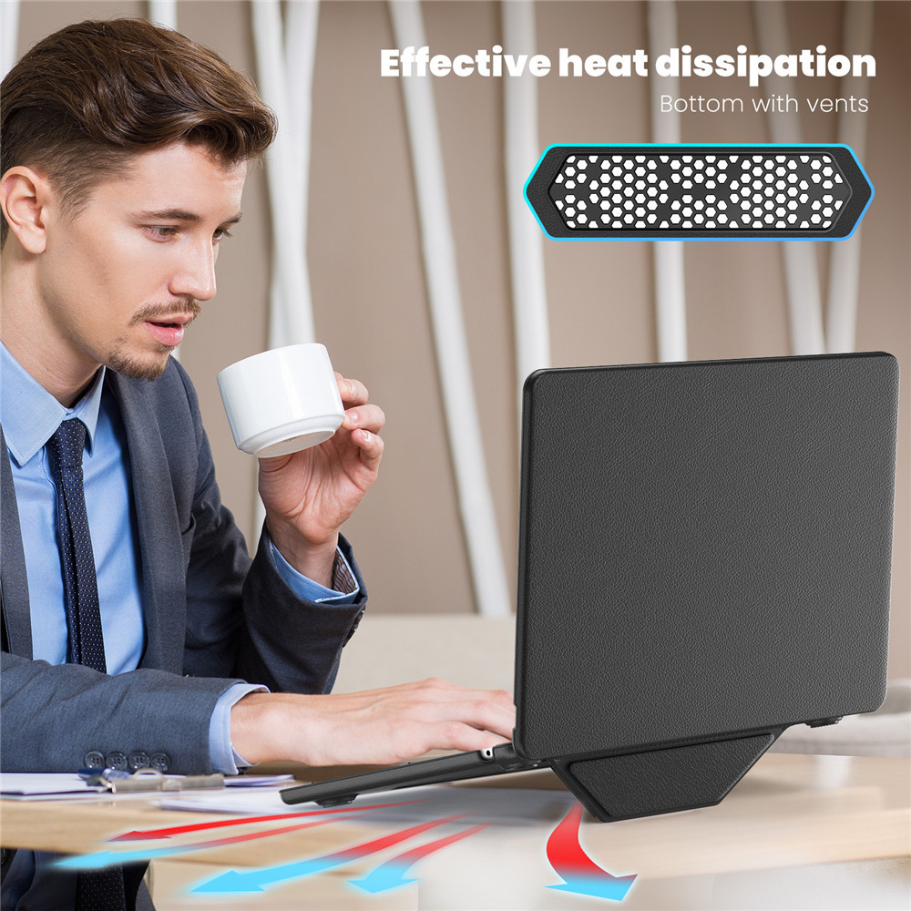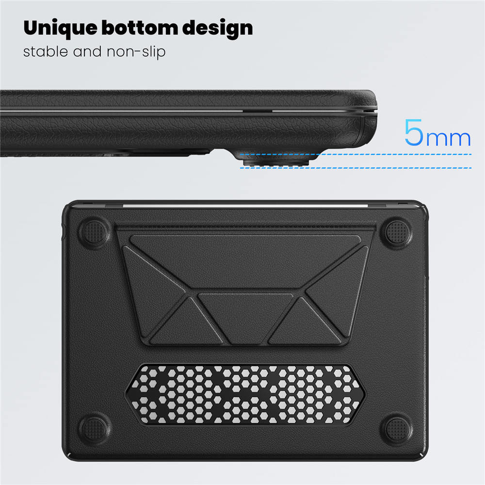 ขาตั้งพับได้: เคสหนัง MacBook Air 13.6 นิ้วนี้มีขาตั้งแบบพับได้ในตัวซึ่งยกด้านหลังของแล็ปท็อปของคุณให้การรองรับที่ทนทานสำหรับอุปกรณ์ของคุณ ขาตั้งที่เป็นนวัตกรรมใหม่นี้ให้มุมมองตามหลักสรีรศาสตร์และมุมการพิมพ์ทำให้การทำงานและความบันเทิงสะดวกสบายยิ่งขึ้น ด้วยฟังก์ชั่นป้องกันการลื่นและเสถียรภาพที่เพิ่มขึ้นคุณสามารถวางใจได้ว่าอุปกรณ์ของคุณจะอยู่ในสถานที่อย่างปลอดภัย นอกจากนี้ตัวยึดยังสามารถพับเก็บได้ง่ายเมื่อไม่ใช้งานเพื่อเพิ่มความสะดวกและการใช้งาน