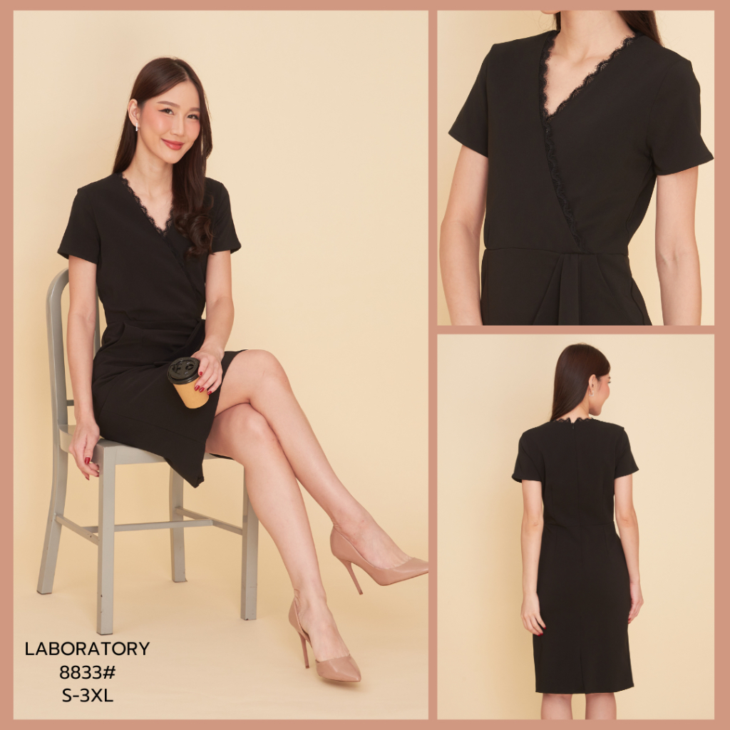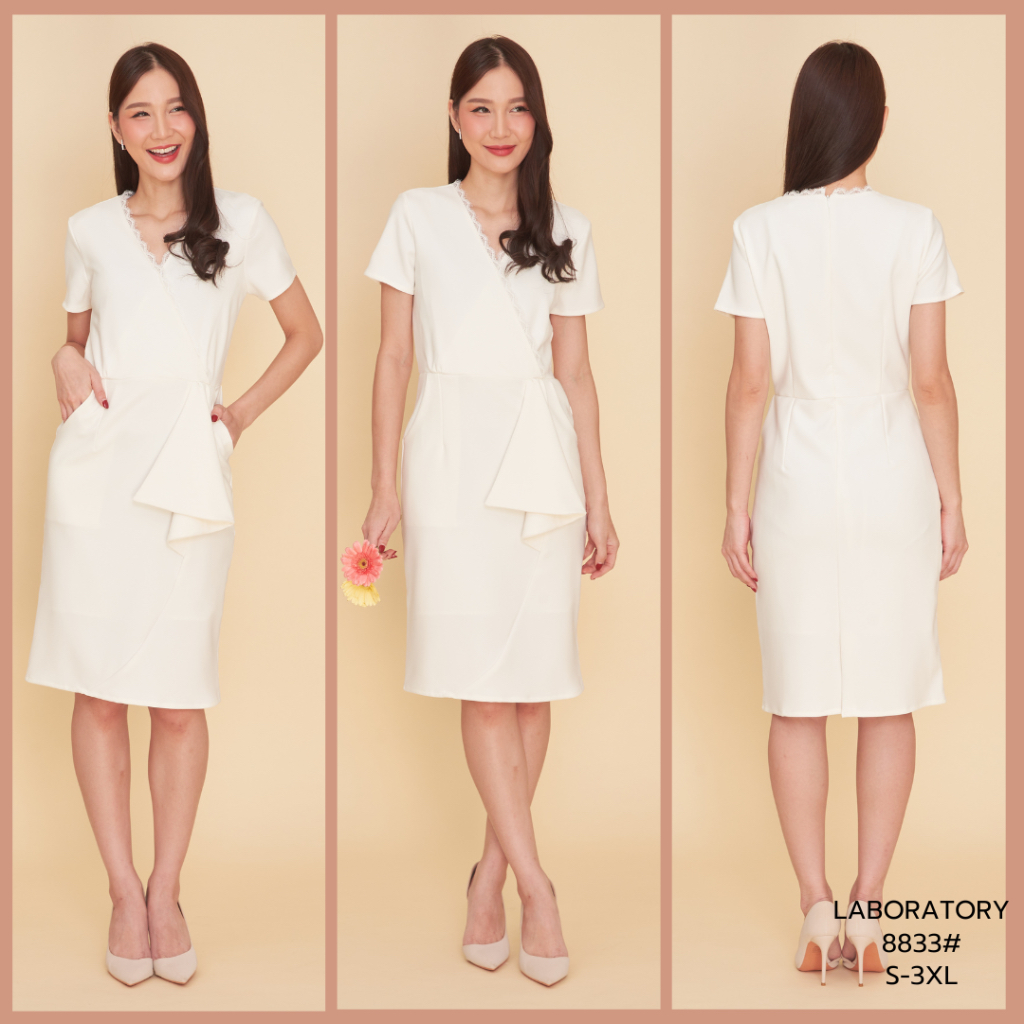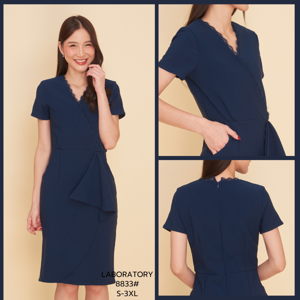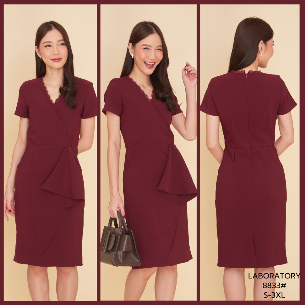 เดรส 8833# เดรสสีพื้นผ้าโพลีเอสเตอร์ผสมสแปนเดกซ์ เนื้อผ้านิ่มยืดหยุ่น ทำให้ชุดเป็นทรงสวย ยับยาก และยังใส่สบายอีกด้วย