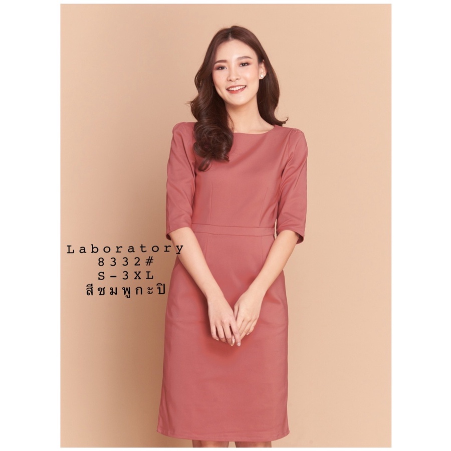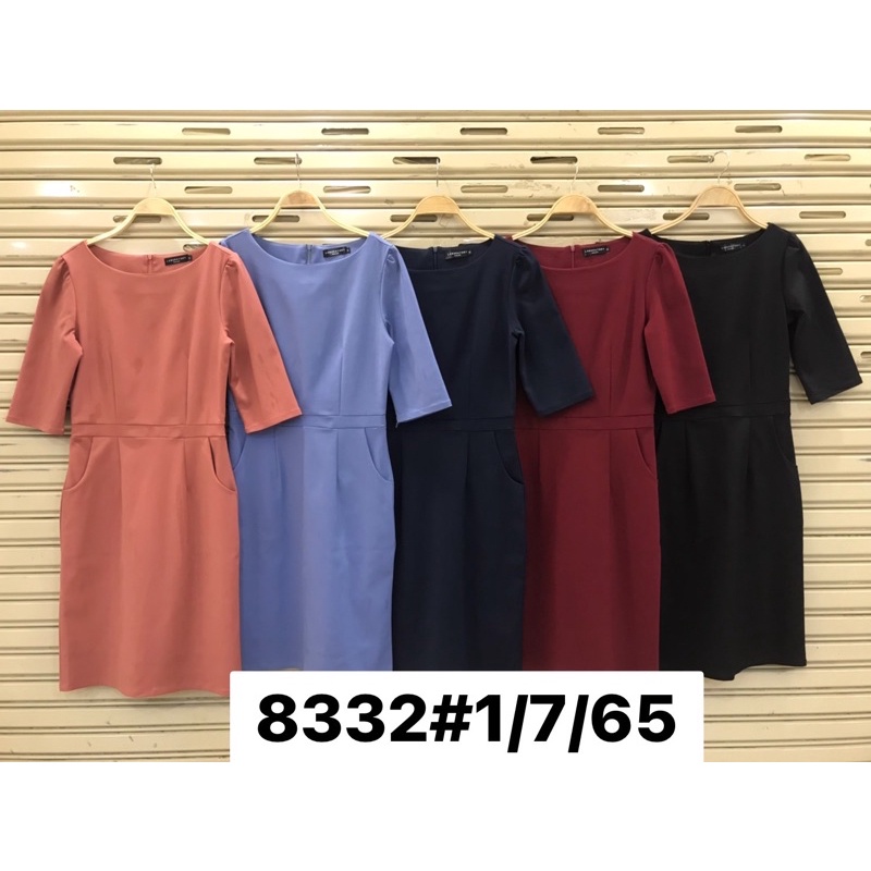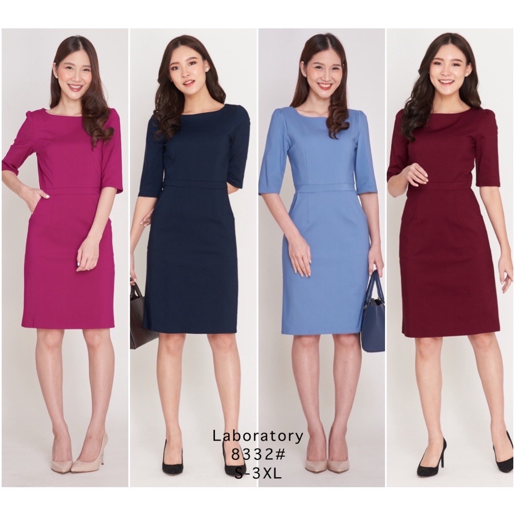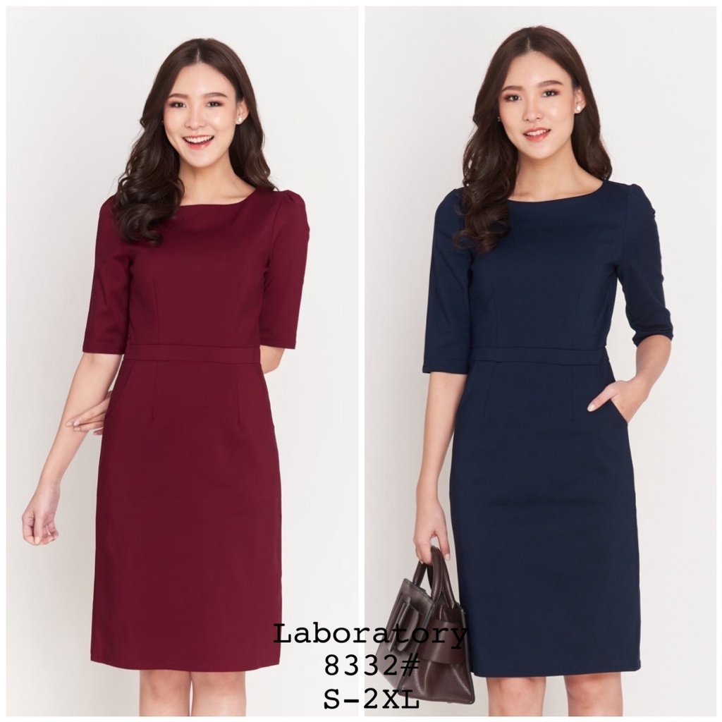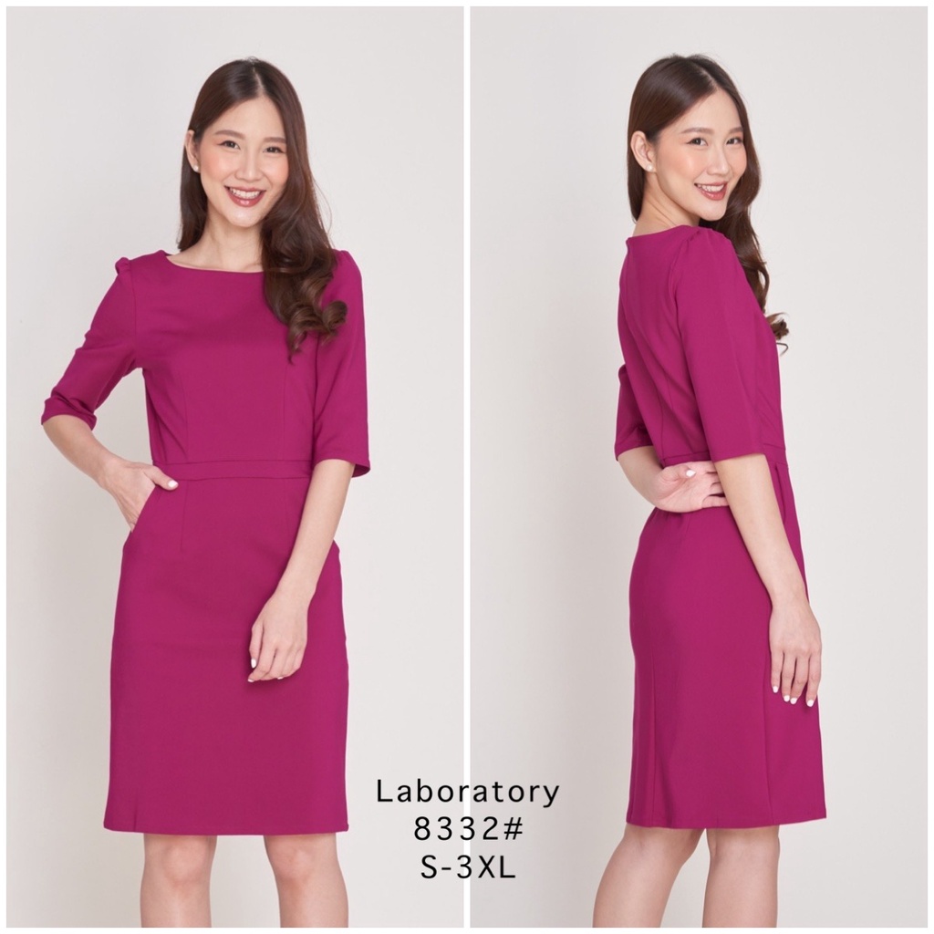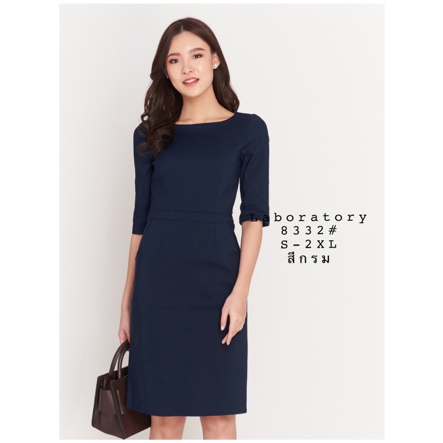 เดรส#8332 เดรสทรงสอบแขนสามส่วน คอปาด ยกไหล่นิดๆ มีกระเป๋า มีซิบใน ซิปหลัง