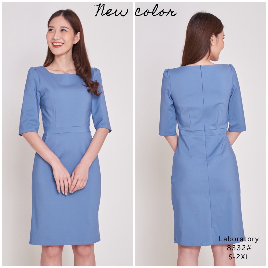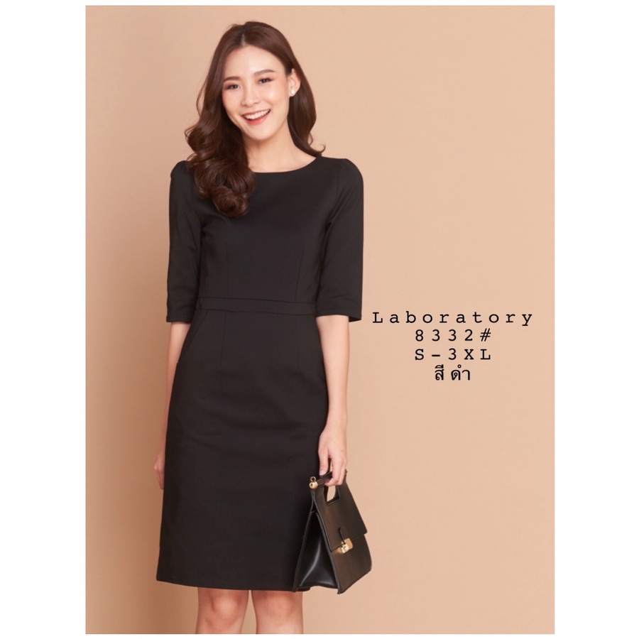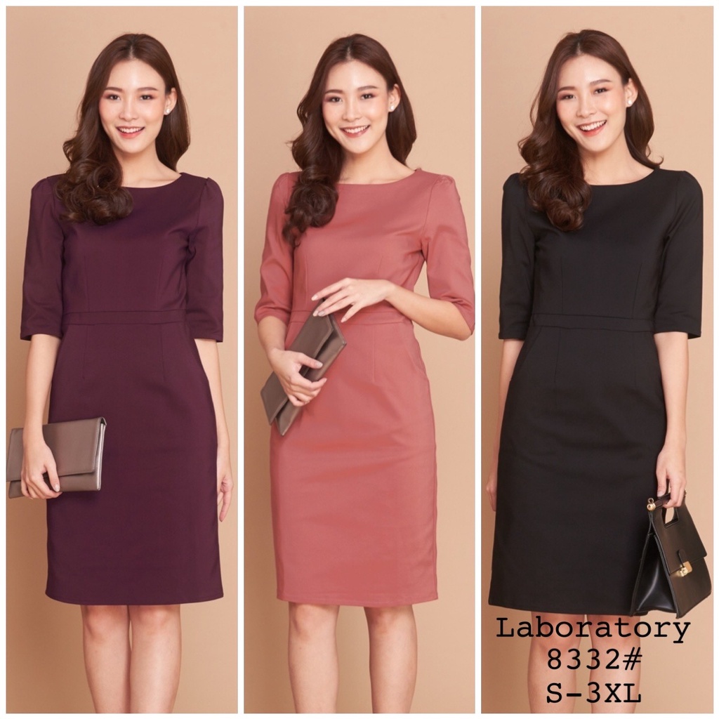 *Laboratory* 8332#เดรสคอปาดแขนสามส่วน ยกไหล่นิดๆ กระโปรงทรงสอบ