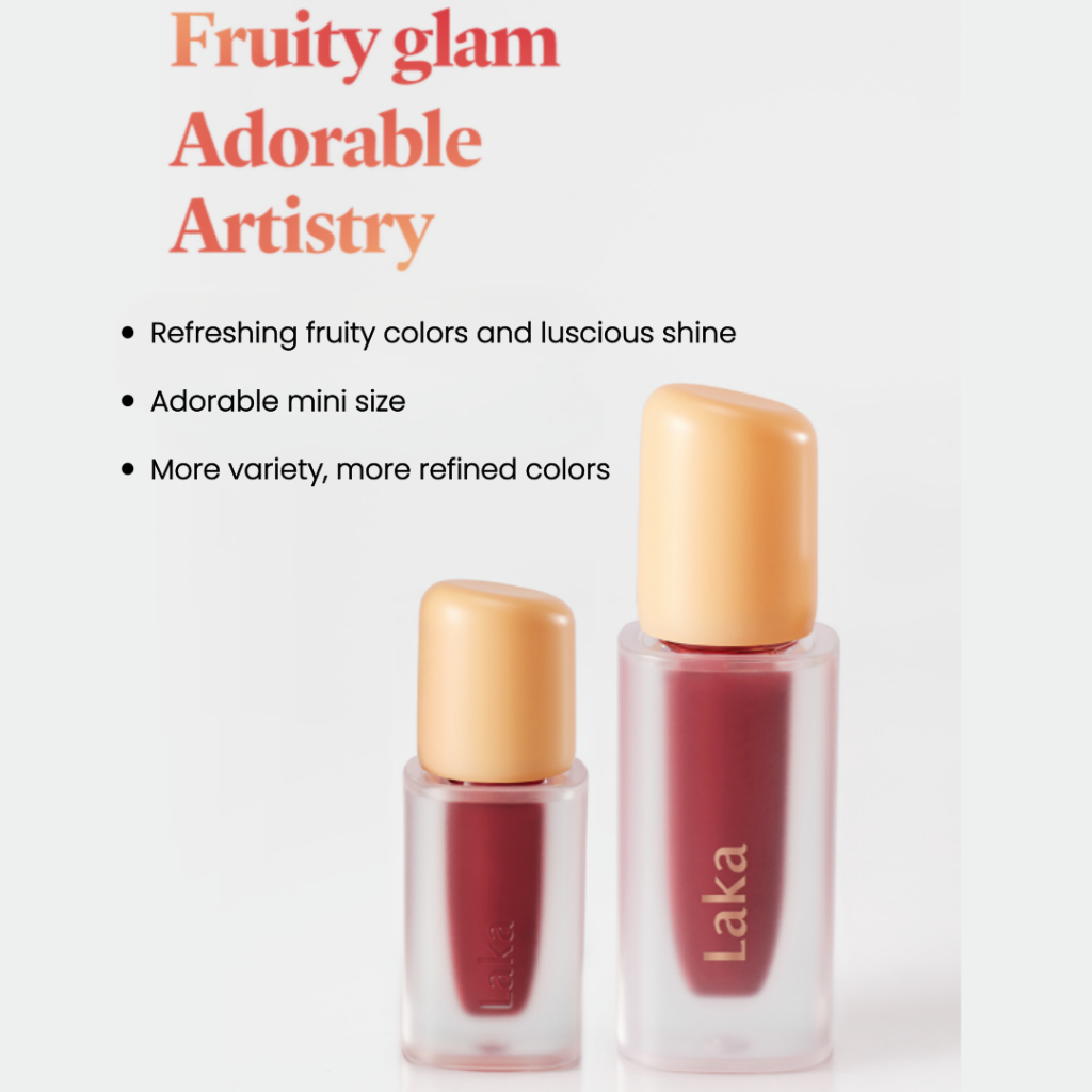 The LAKA Fruity Glam Tint Mini นำเสนอเฉดสีที่สวยงาม 30 เฉดสีพร้อมความเปล่งประกายฉ่ำที่คงอยู่ไม่ผิดหวังอีกต่อไป! ✨