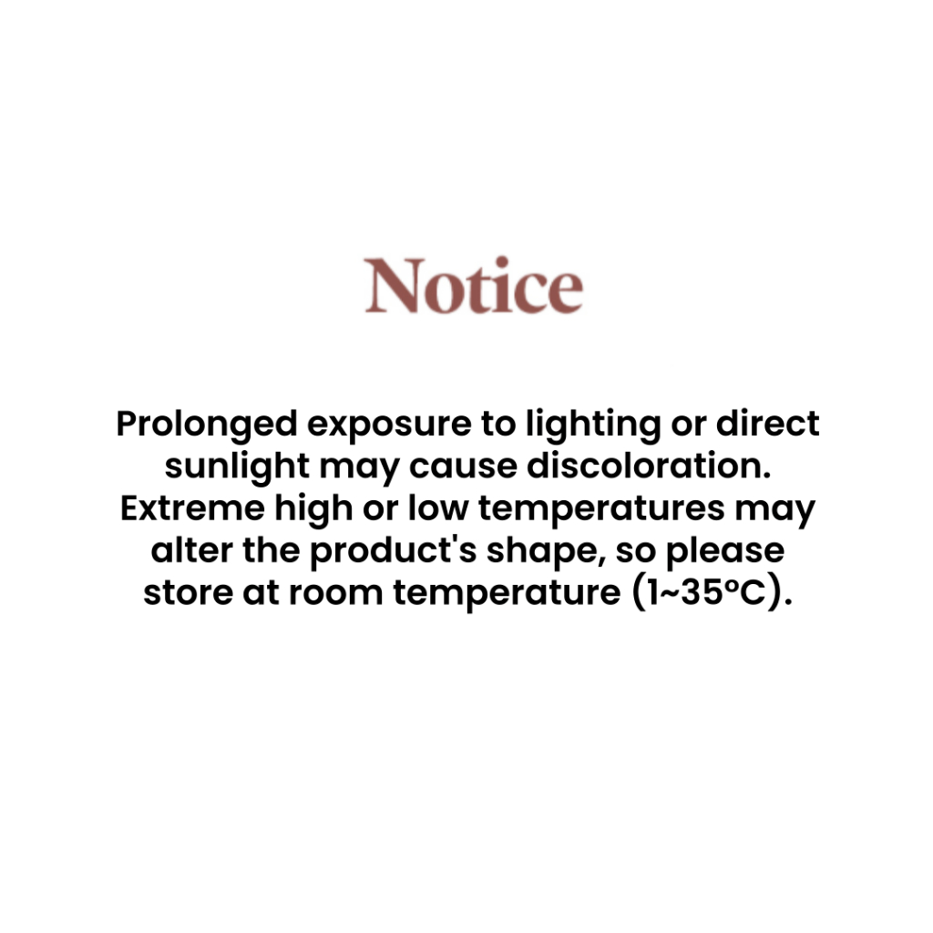 ข้อสังเกต: เก็บที่อุณหภูมิห้อง (1–35℃). หลีกเลี่ยงแสงแดดโดยตรงหรืออุณหภูมิที่สูงเกินไปเพื่อรักษาสีและรูปร่าง