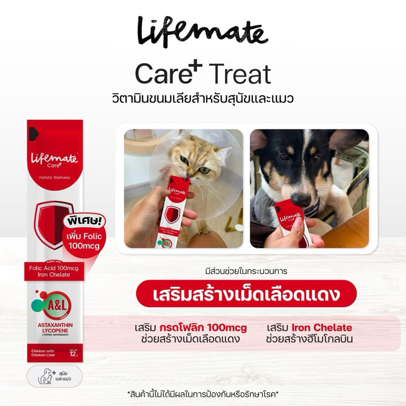 Lifemate Care+ Holistic Wellness Treat for Dog&Cat ❤️ ไลฟ์เมต แคร์พลัส วิตามินขนมเลียสำหรับสุนัขและแมว บรรจุ 12g