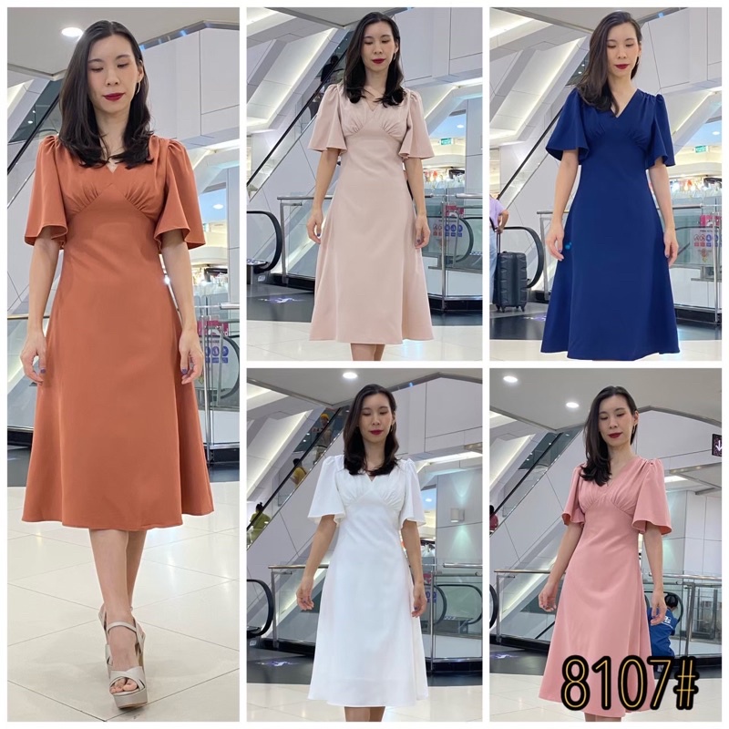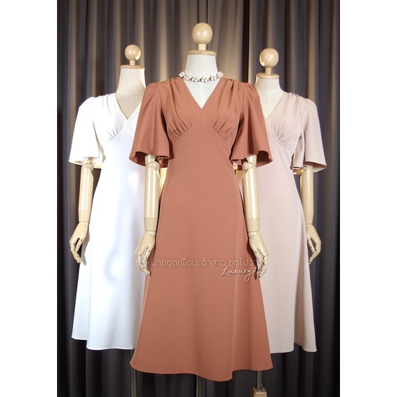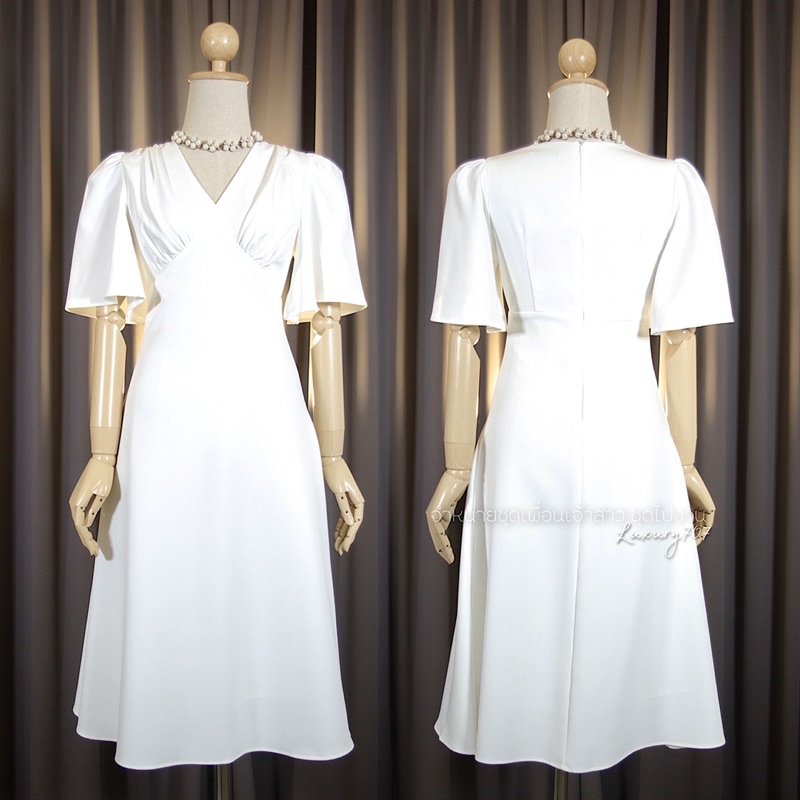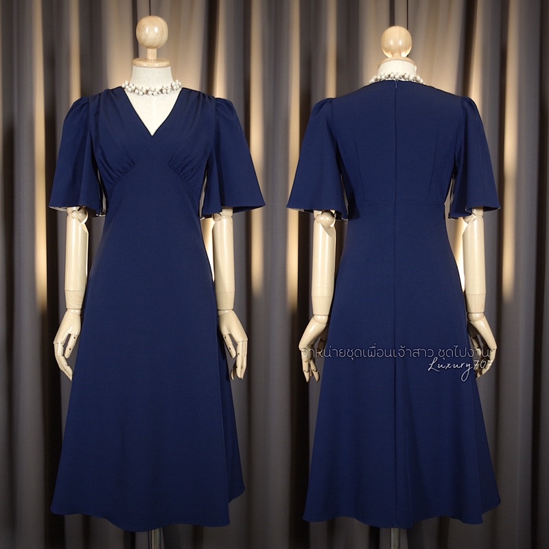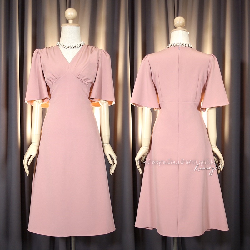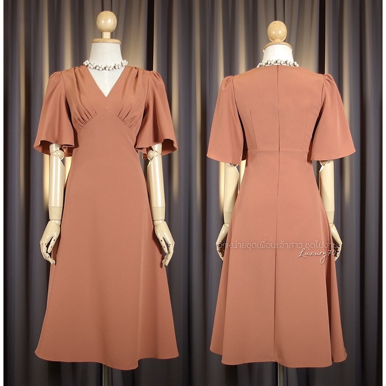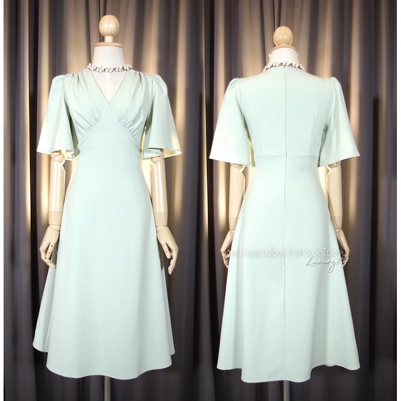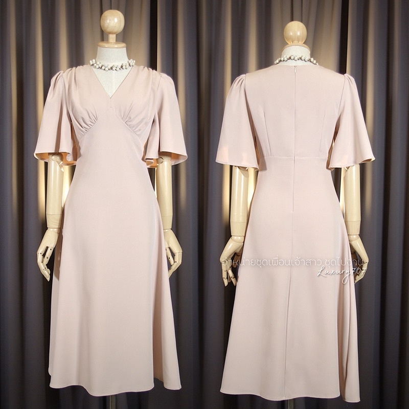 [LUXURY707] FN8107 : ชุดไปงานแต่ง Midi dress คอวี แขนกระดิ่ง