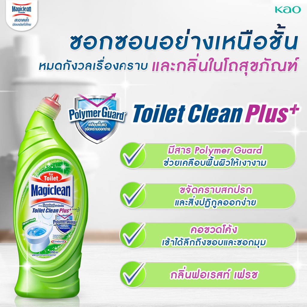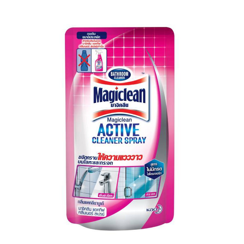 สำหรับใช้เติมมาจิคลีนสำหรับทำความสะอาดห้องน้ำ แบบสเปรย์ ขจัดคราบเข้าถึงซอกมุมและส่วนที่เข้าถึงยาก ทำความสะอาดได้บริเวณกว้าง สะดวกใช้ด้วยหัวฉีดระบบพิเศษ ปรับได้ถึง 3 แบบ สามารถขจัดคราบสบู่ คราบเหลือง คราบดำ สามารถใช้ได้กับพื้น ผนัง อ่างล้างหน้า โถสุขภัณฑ์ ฉากกั้นห้องน้ำ กลิ่นไม่ฉุน ไม่แสบจมูก