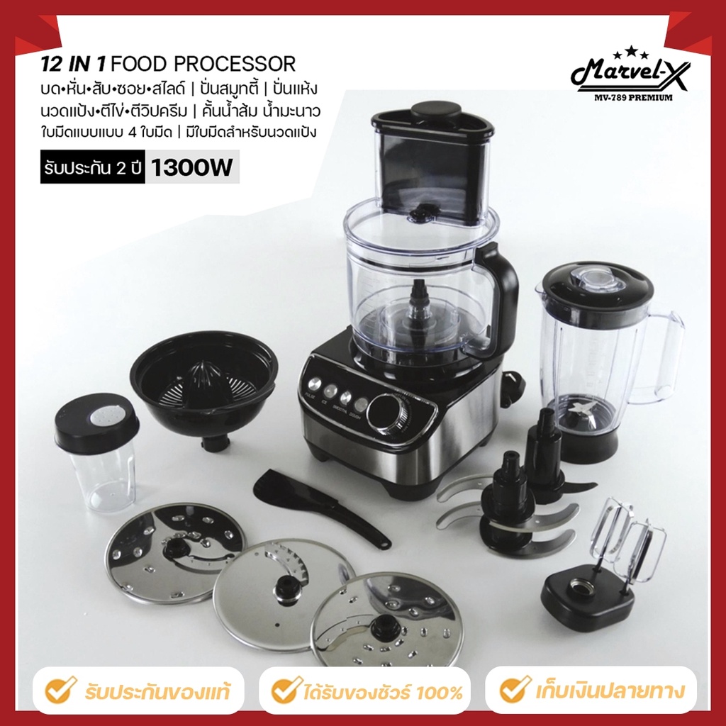 ⭕️สามารถปั่นน้ำผลไม้, บดสับอาหาร, หั่นหยาบ, หั่นละเอียด, สไลด์ผัก, คั้นน้ำส้ม, นวดแป้ง, ตีน้ำสลัด
