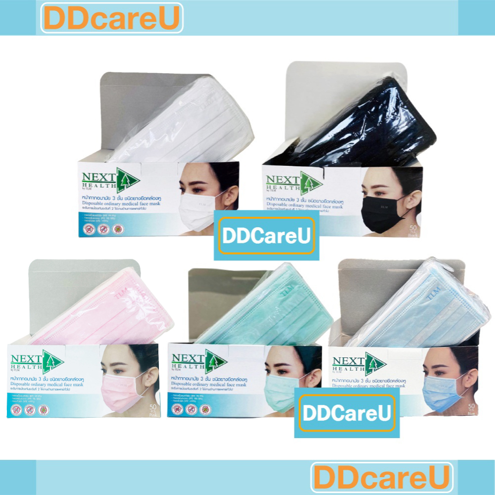 Mask หน้ากากอนามัยทางการแพทย์ Next Health 50 ชิ้น 3 ชั้น สีเขียว/ ขาว/ ชมพู/ ฟ้า/ ดำ แมส TLM เน็กซ์เฮลธ์ ผลิตในไทย