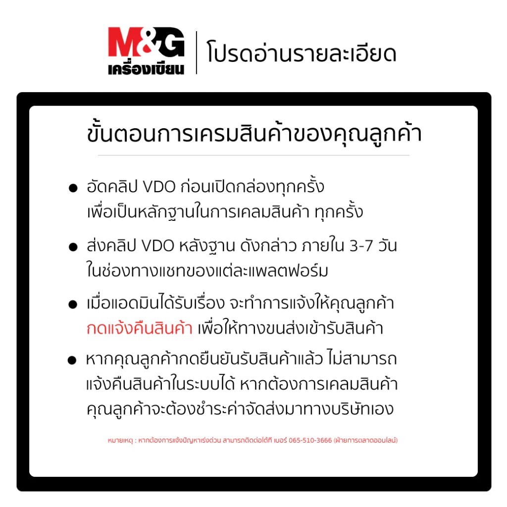 > กรุณาแจ้งทางแชททันที หลังจากกดยืนยันการสั่งซื้อ < โปรดถ่ายวิดีโอ VDO ตอนเปิดกล่องเพื่อใช้เป็นหลักฐานในการยื่น เคลม เปลี่ยน หรือคืนสินค้าทุกครั้ง หากสินค้ามีปัญหาแต่ไม่มีหลักฐานวิดีโอทางเราขอสงวนสิทธิ์ไม่รับผิดชอบในทุกกรณี