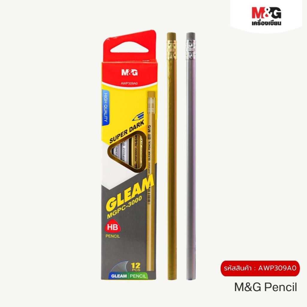 รายละเอียดสินค้า M&G ดินสอไม้ HB Gleam ยกกล่อง 12 ด้าม