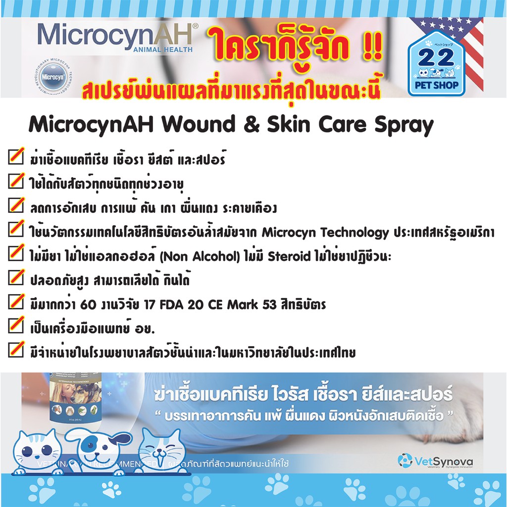 MicrocynAH Skin care spray 59ml. ช่วยบำรุงผิวและให้ความชุ่มชื้นฟื้นฟูผิวหนังลดการระคายเคือง