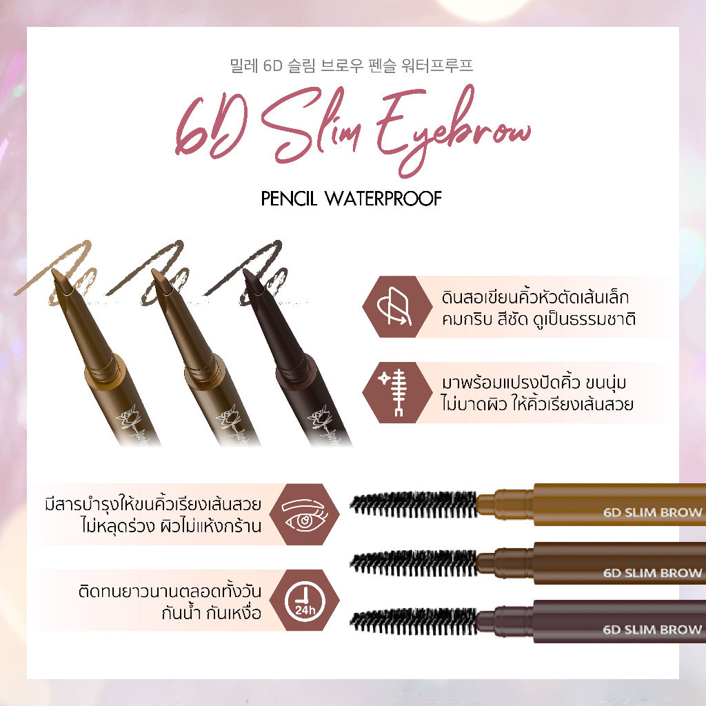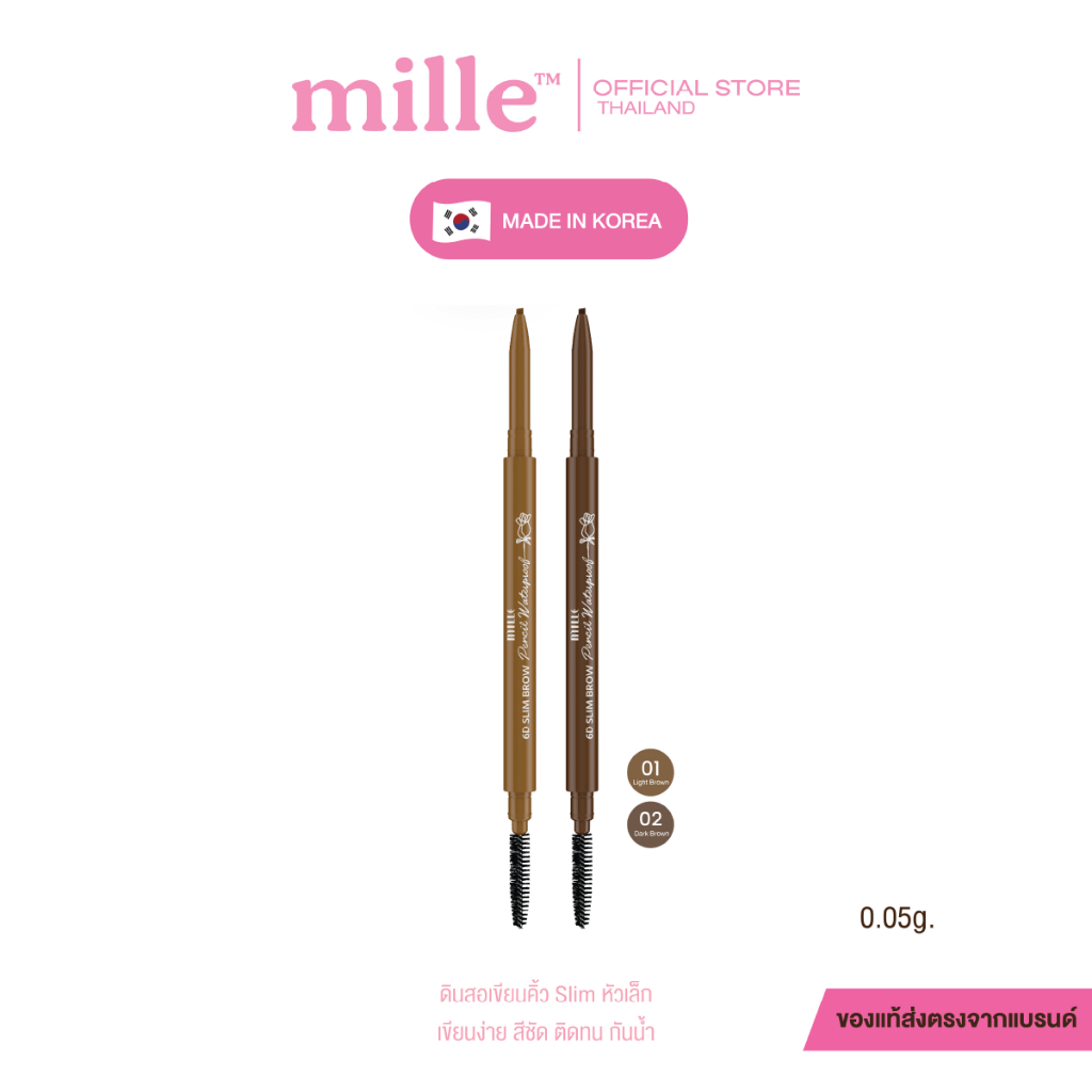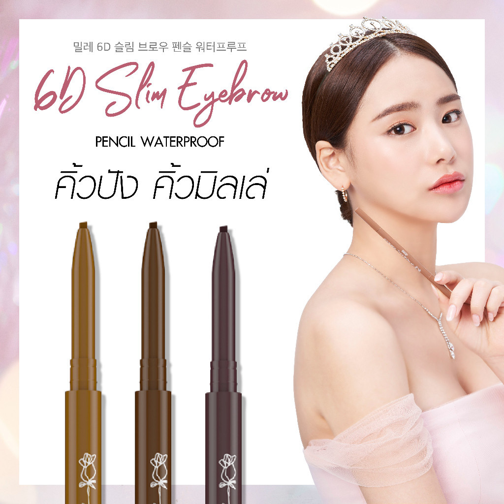Mille ดินสอเขียนคิ้วหัวเรียวเล็ก 6D Slim Brow Pencil Waterproof 0.05g.