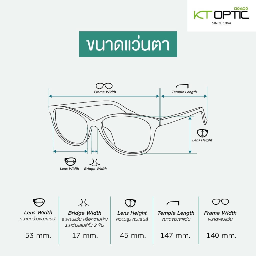 ความยาวขาแว่น 147 มม.