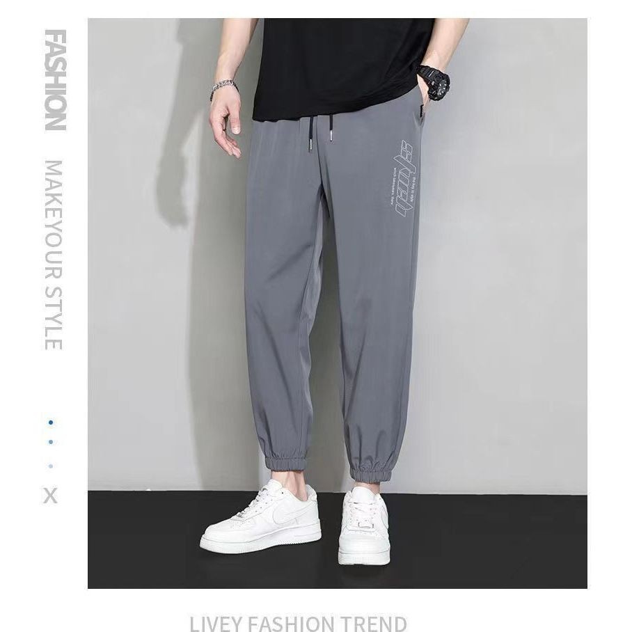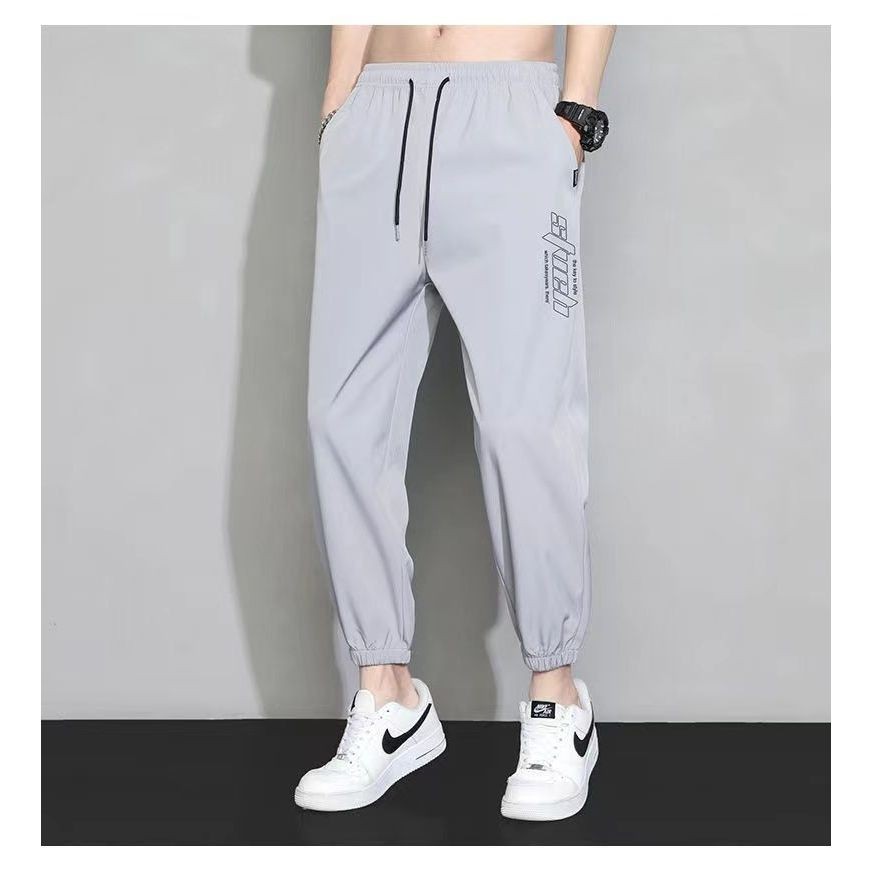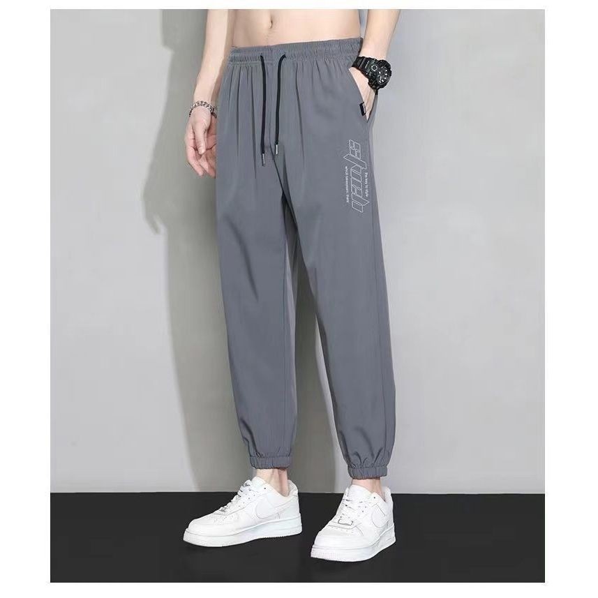 กางเกงขายาวผู้ชาย แฟชั่น กางเกงเอวยางยืด ขาจ้ำ ทรงสวยมีกระเป๋าข้าง เนื้อผ้าร่ม