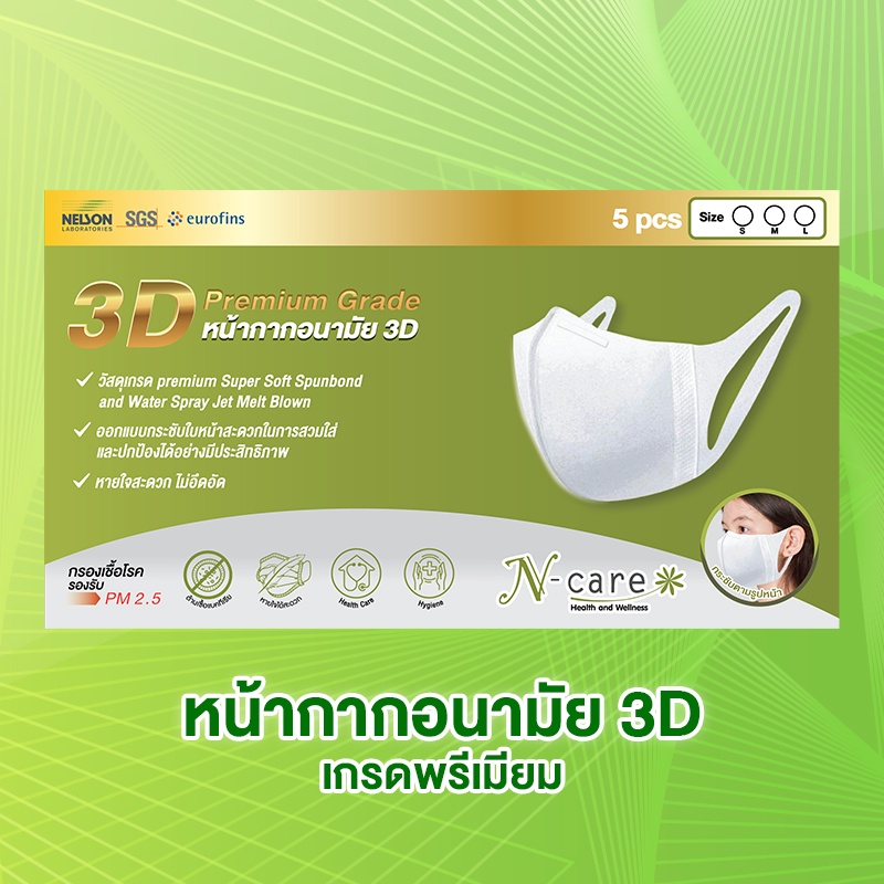 N-Care 3D Premium Grade หน้ากากอนามัย 3D (1 แพ็ค 5 ชิ้น)