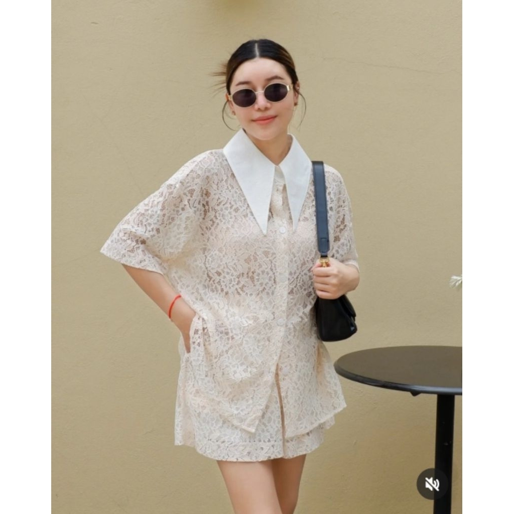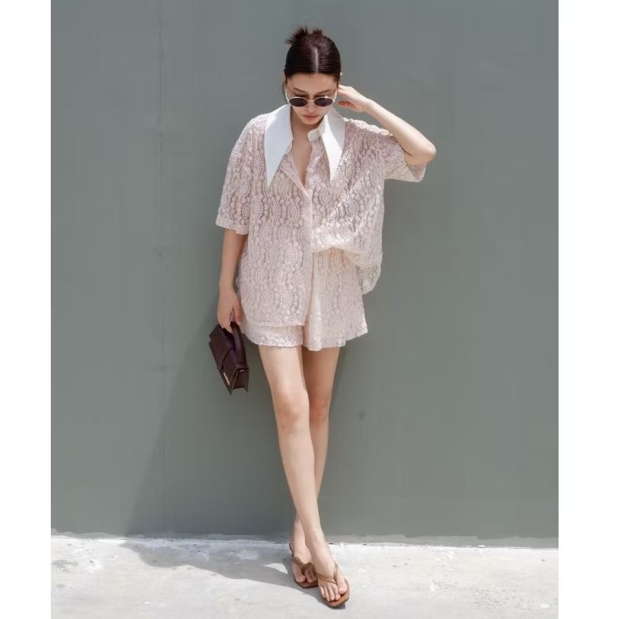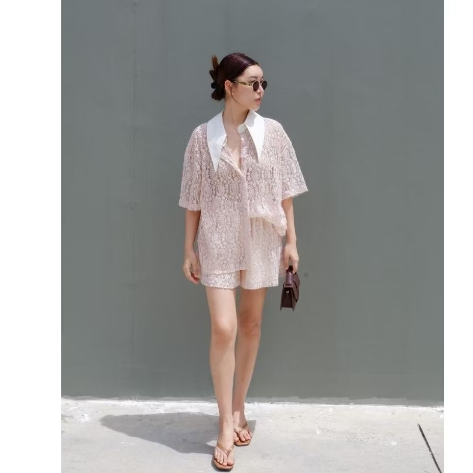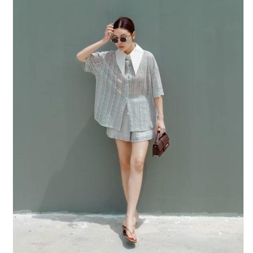 เสื้อเชิ้ตสั้นทรงโอเวอร์ไซส์มาคู่กับกางเกง ตัวกางเกงมีซับใน ไม่ต้องกลัวโป๊เลย