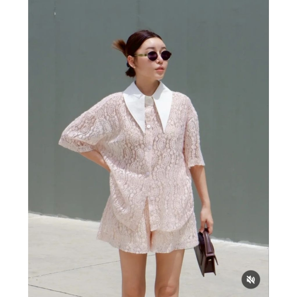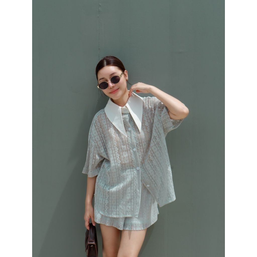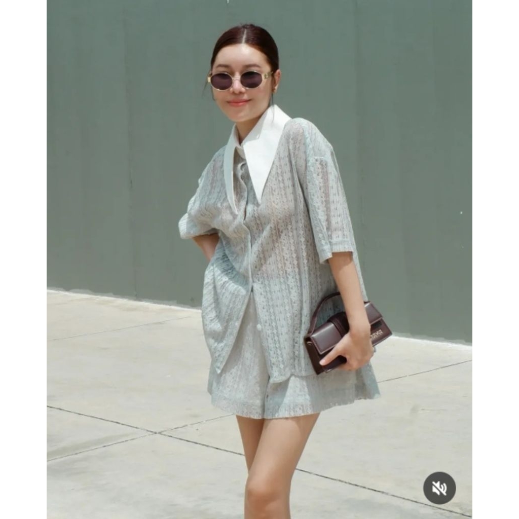 เสื้อเชิ้ตสั้นทรงโอเวอร์ไซส์มาคู่กับกางเกง ตัวกางเกงมีซับใน ไม่ต้องกลัวโป๊เลย