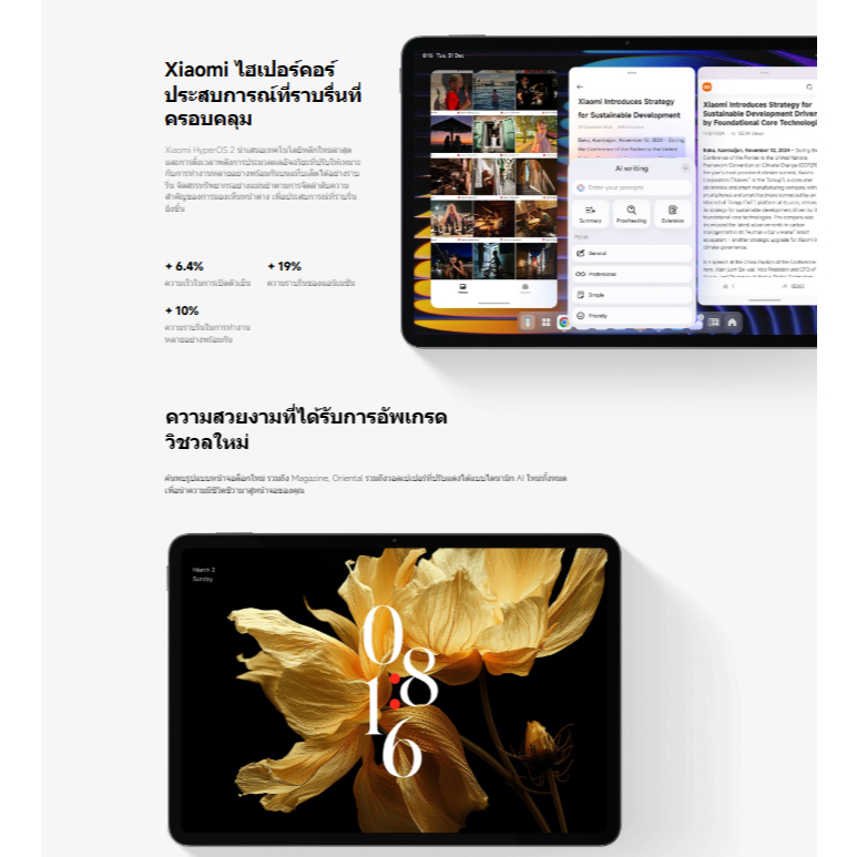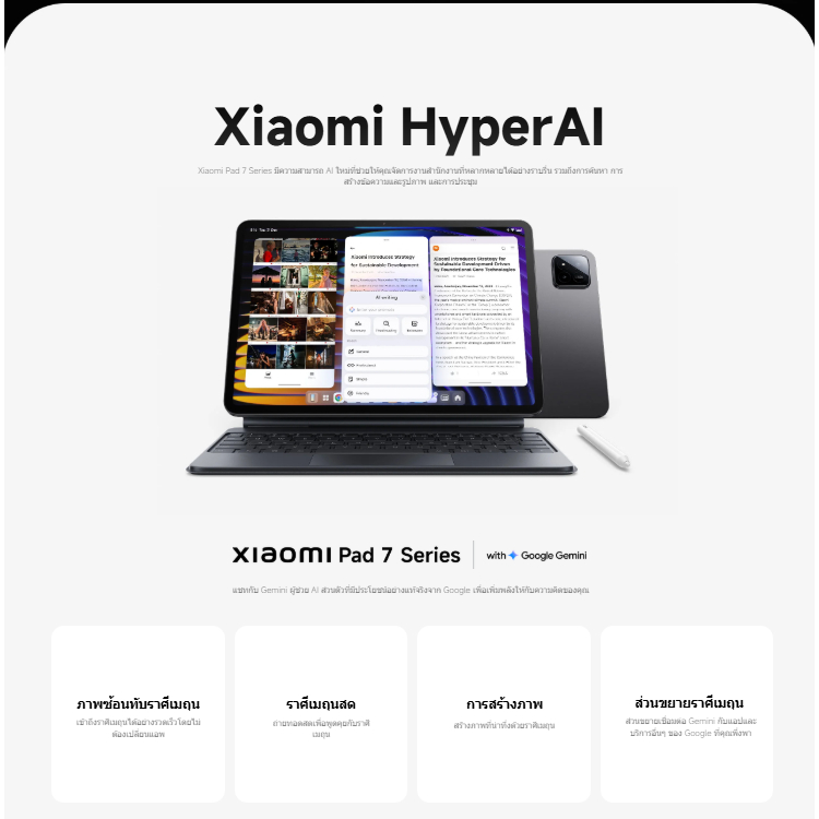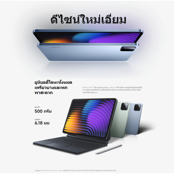 TÜV Rheinland เป็นมิตรกับ Circadianสีดั้งเดิม PRO | โหมดแสงแดด | 68 พันล้านสี | DCI-P3 | ดีซีไอ-P3 | โปร HDR | โปร HDR โหมดการอ่าน | สีที่ปรับเปลี่ยนได้ | เอ็นจิ้นภาพ AI | AI HDR10 | Dolby Vision | Dolby Vision | ดูบี้วิชั่น® เทคโนโลยีสัมผัสแบบเปียก | ความละเอียดสูง 10x*ขนาดหน้าจอของ Xiaomi Pad 7 อยู่ที่ประมาณ 11.2″ ในสี่เหลี่ยมผืนผ้าเต็มเมื่อวัดในแนวทแยงมุม พื้นที่ที่มองเห็นได้จริงจะน้อยลงเนื่องจากการออกแบบมุมโค้งและการวัดระหว่างผลิตภัณฑ์แต่ละรายการอาจแตกต่างกันไป