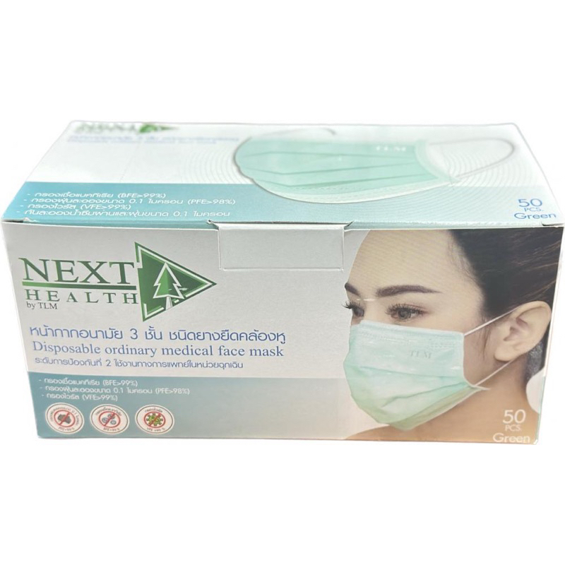 NEXT HEALTH (สำหรับผู้ใหญ่)Disposable ordinary medical face mask จำนวน 50 ชิ้น/ กล่อง