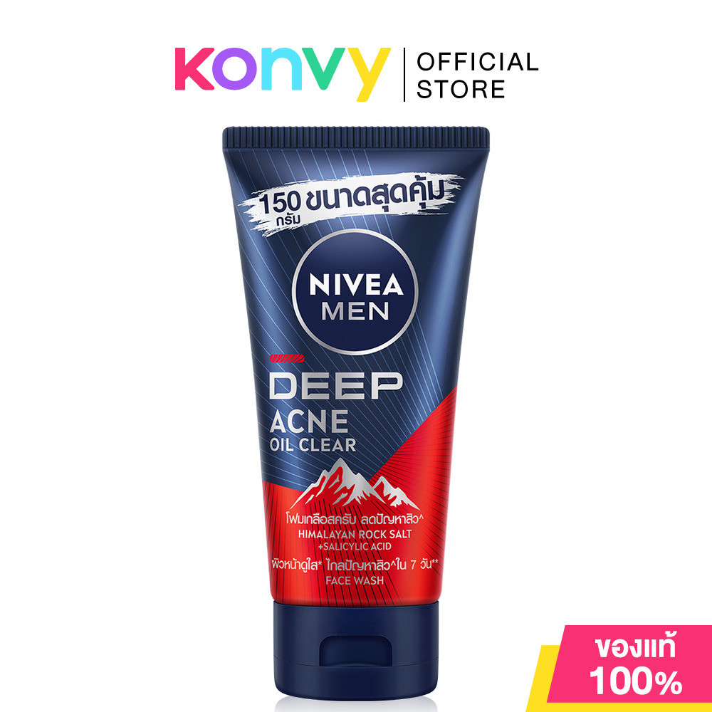 • NIVEA Men Deep Acne Scrub Mud 150g บอกลาสิวกวนใจด้วยโฟมล้างหน้า สำหรับผิวมันง่าย และเป็นสิวมาก ด้วยพลังดีท๊อกซ์ผิวจากสครับธรรมชาติ จัดการสิ่งสกปรกและลดการสะสมของแบคทีเรียที่เป้นต้นเหตุหนึ่งของการเกิดสิว ด้วยส่วนผสมของเกลือหิมาลายัน อุดุมด้วยแร่ธาตุ 84 ชนิดที่สำคัญกับผิว ช่วยแอนตี้แบคทีเรียที่เป็นต้นเหตุหนึ่งของการเกิดสิว และซาลิไซลิค พาวเวอร์ จัดการหัวสิวเสี้ยน สิวอุดตัน ลดโอกาสการเกิดสิวใหม่