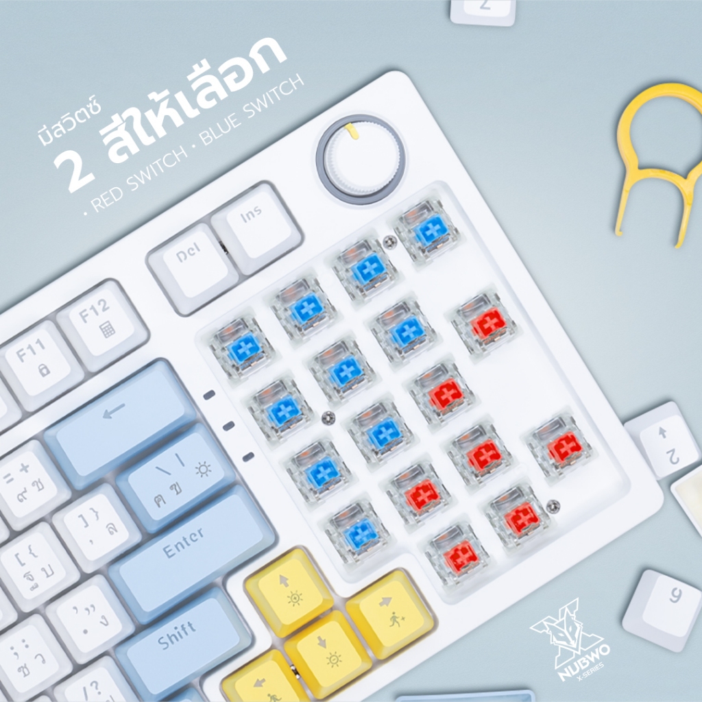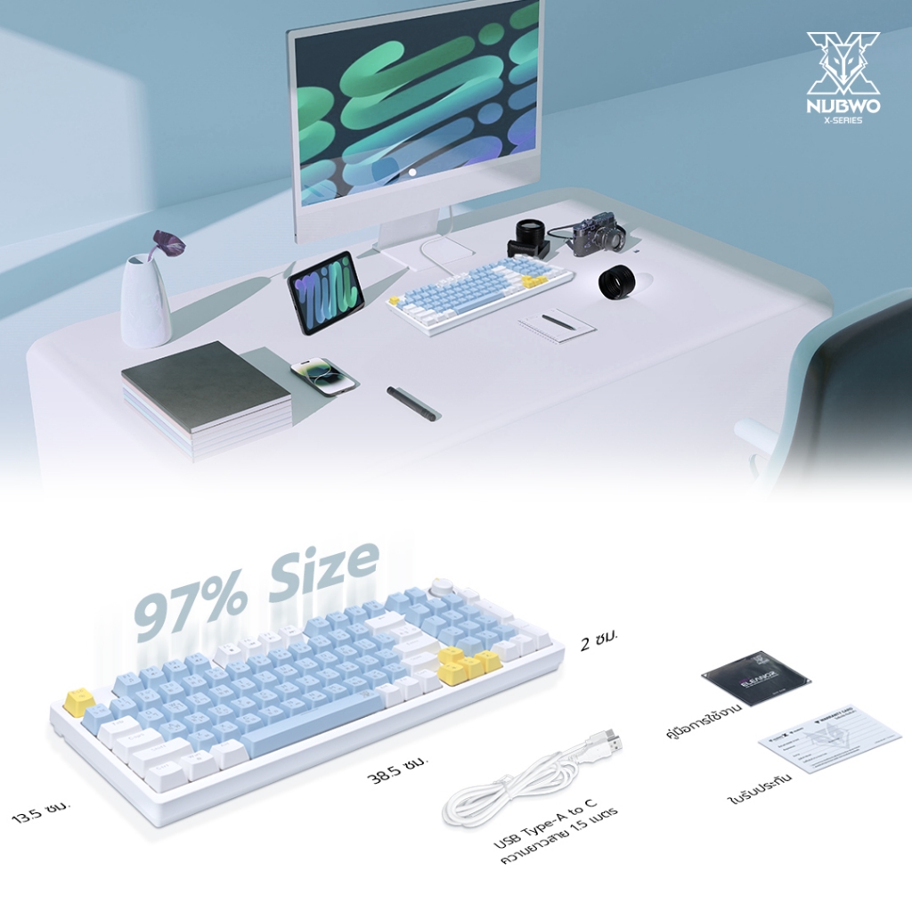 คีย์บอร์ดเกมมิ่งแบบ Mechanical Keyboard ขนาด 97% มีจำนวน 96 ปุ่ม เหมาะสำหรับวางบนโต๊ะทำงานและโต๊ะเกมมิ่ง มีไฟแบบ Mini RGB ครอบคลุมทุกการใช้งาน มีสวิตซ์ 2 สี ให้ได้เลือก Blue Switch และ Red Switch รองรับการกดมากกว่า 50 ล้านครั้ง เชื่อมต่อผ่านสาย USB TYPE-C