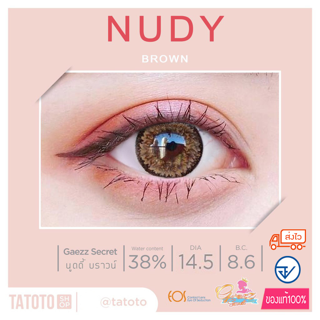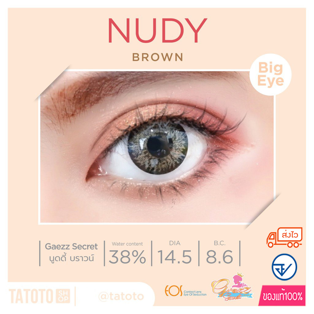 Nudy brown พร้อมค่าสายตา เลนส์2โทน ตัดขอบดำ สีน้ำตาลอมเหลือง ตัวเลนส์มีลาย รุ่นยอดฮิตใส่แล้วออกแบ้วๆ