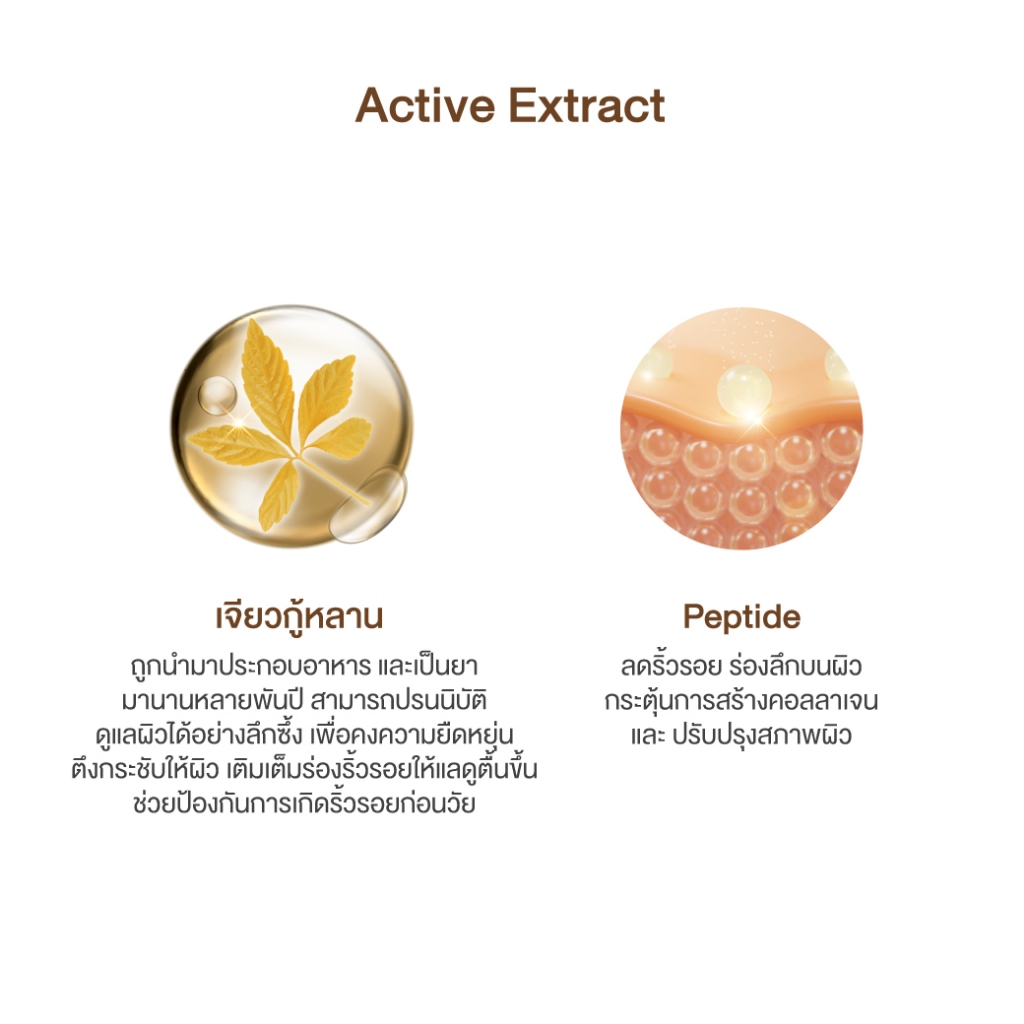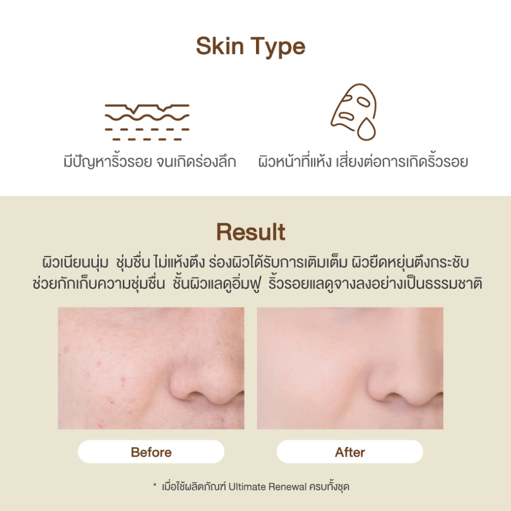 สำหรับผู้ที่มีปัญหาริ้วรอยจากวัยความยืดหยุ่นให้ผิวเนียนเรียบกระชับพร้อมกักเก็บความชุ่มชื่นสมดุล