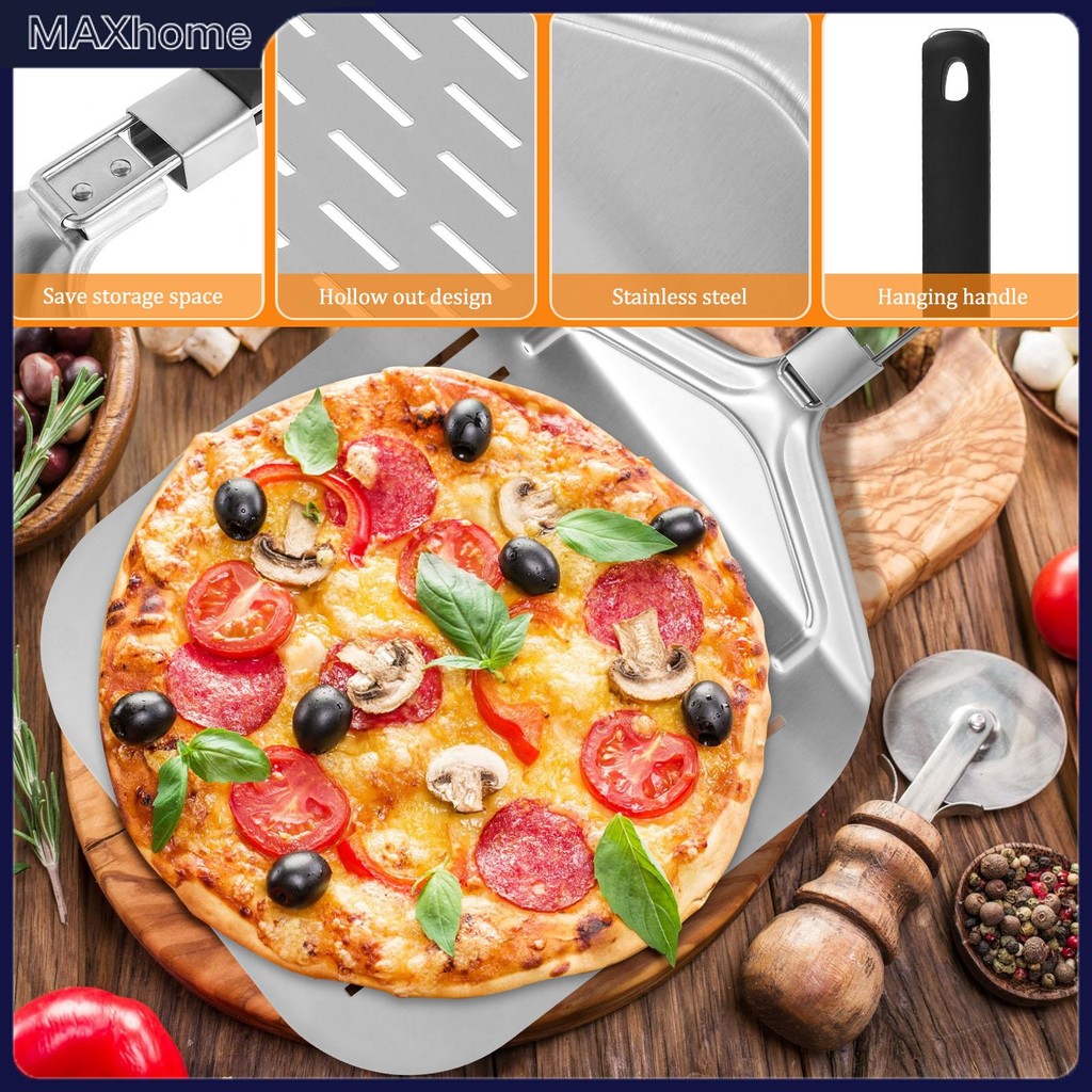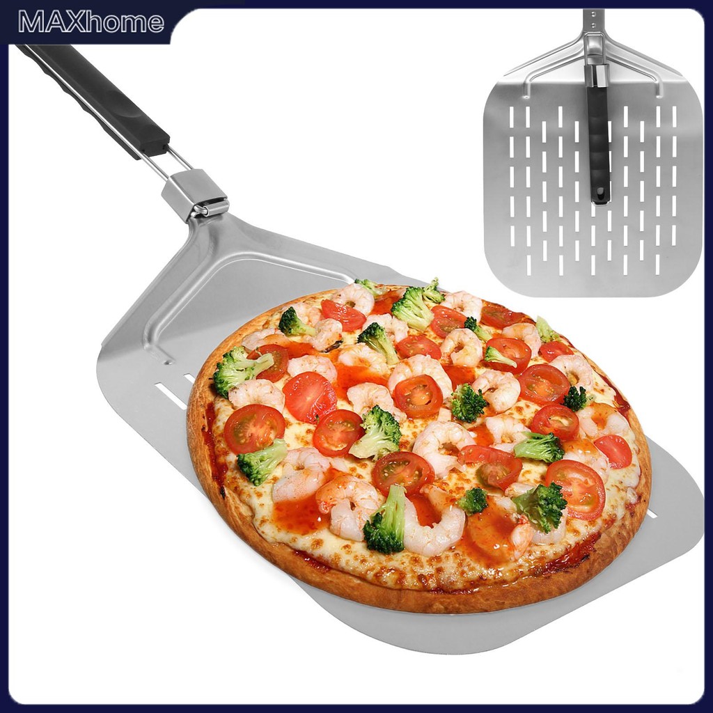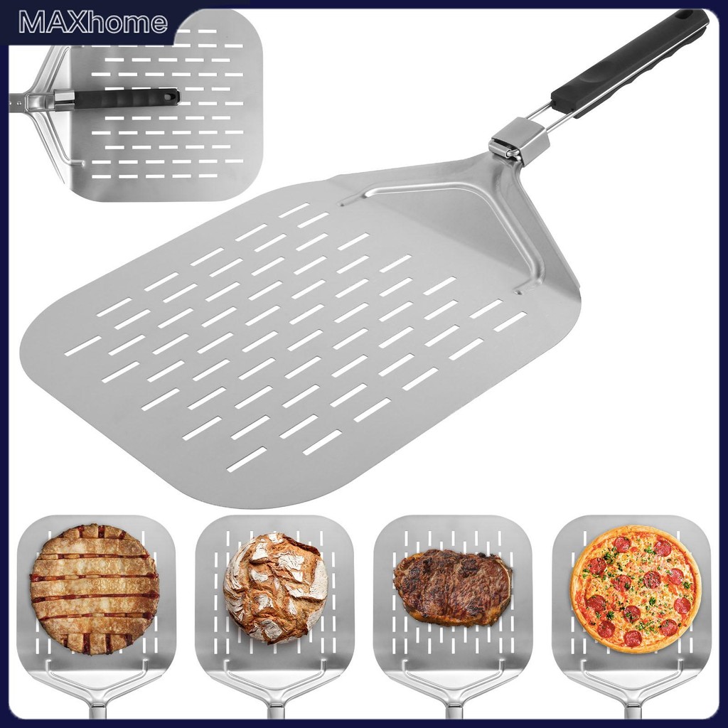 ตะหลิวพิซซ่าเปลือกพิซซ่าสแตนเลสแบบเจาะรูพร้อมที่จับพับได้พายเปลือกพิซซ่ากันสนิมไม่ติดเปลือกหมุนพิซซ่า 24.9 × 12.4 × 12.6 นิ้วสี่เหลี่ยม SHOPTKC0450