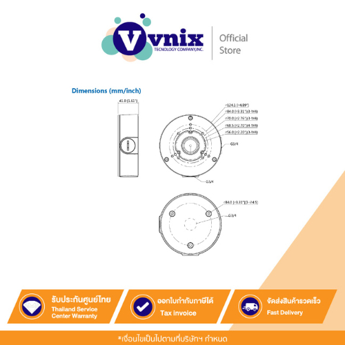 ขนาด: Φ124 มม. x 41 มม. (4.88 นิ้ว x 1.61 นิ้ว)