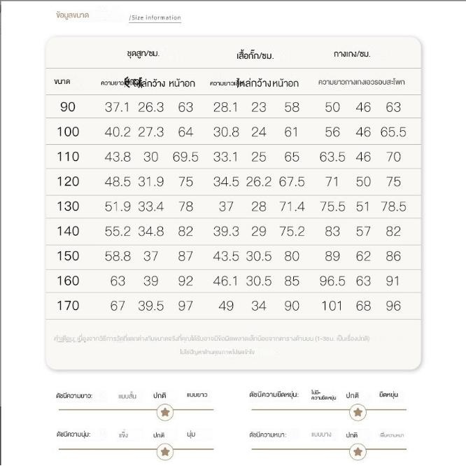 160-170 ซม. น้ำหนักที่แนะนำ: 49-45กก. ขนาด: 170