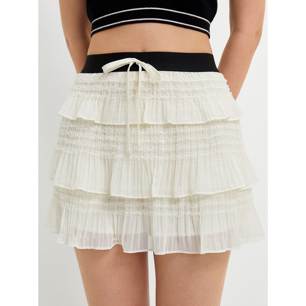 [Pomelo] กระโปรงกางเกงแต่งระบายดีไซน์เลเยอร์ / Layered Ruffle Skort