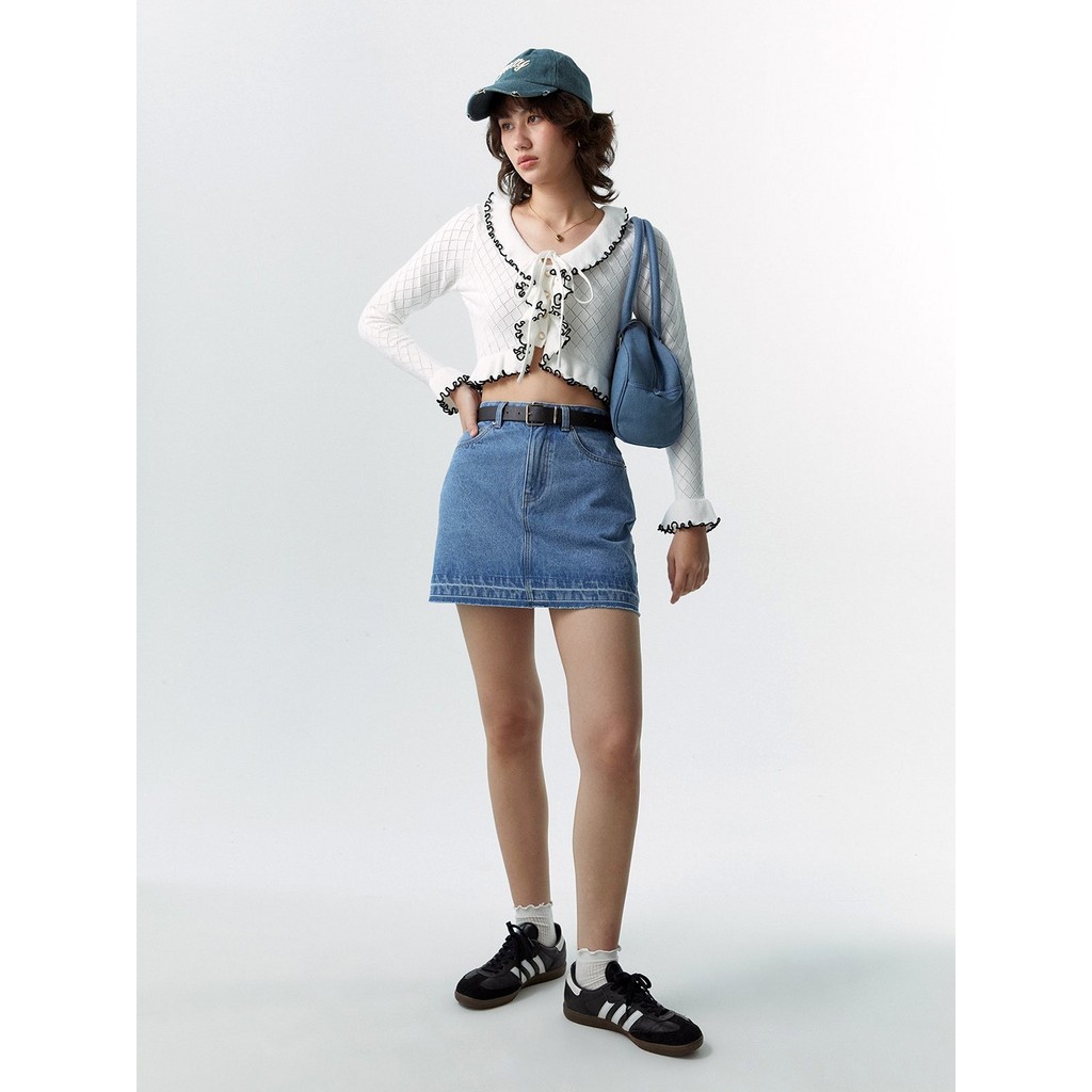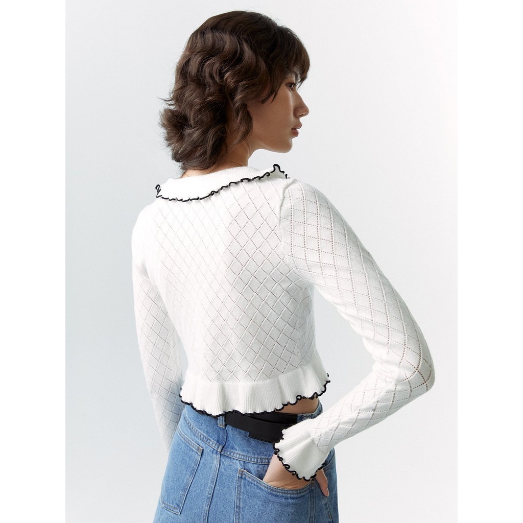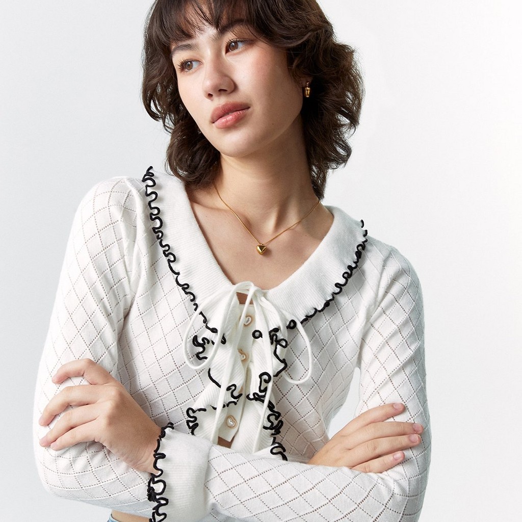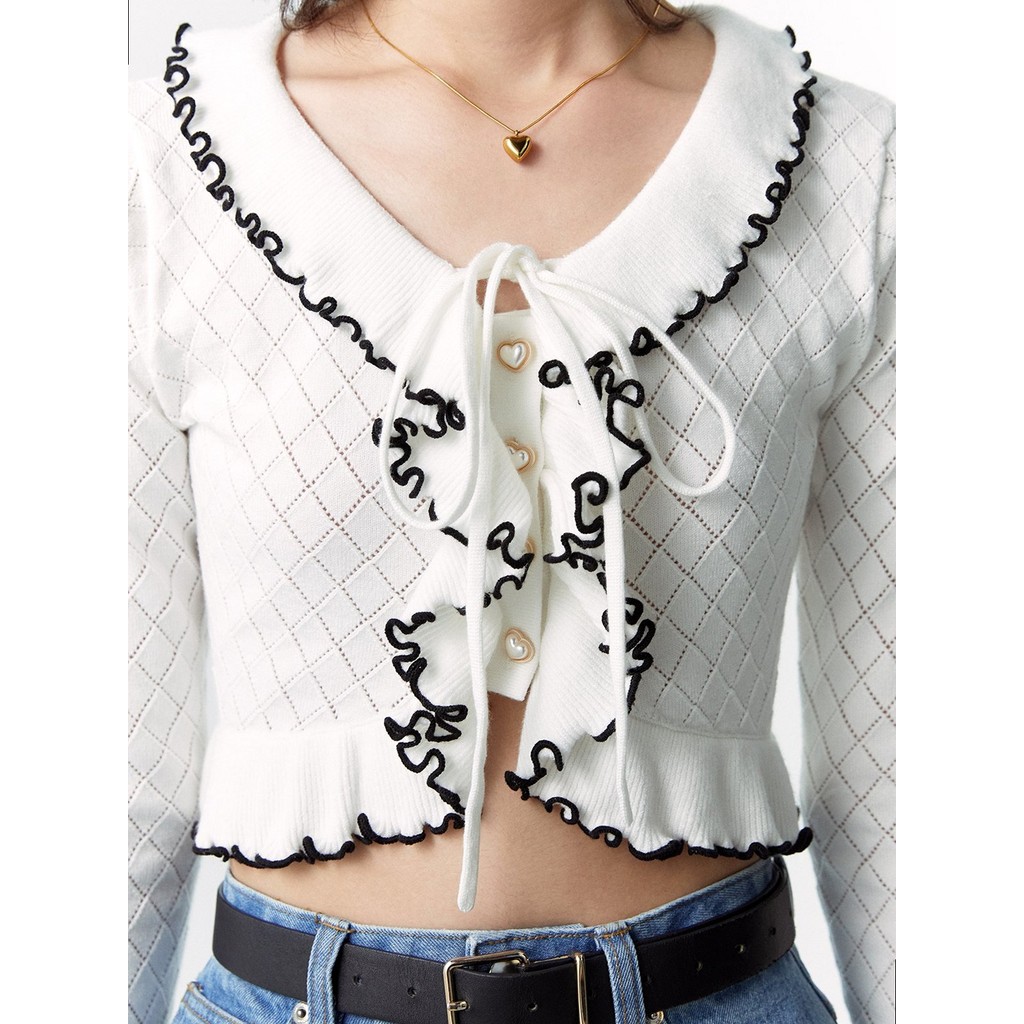 [Pomelo] เสื้อคาร์ดิแกนดีเทลโบว์ผูกระบาย / Bow Tie Ruffled Cardigan