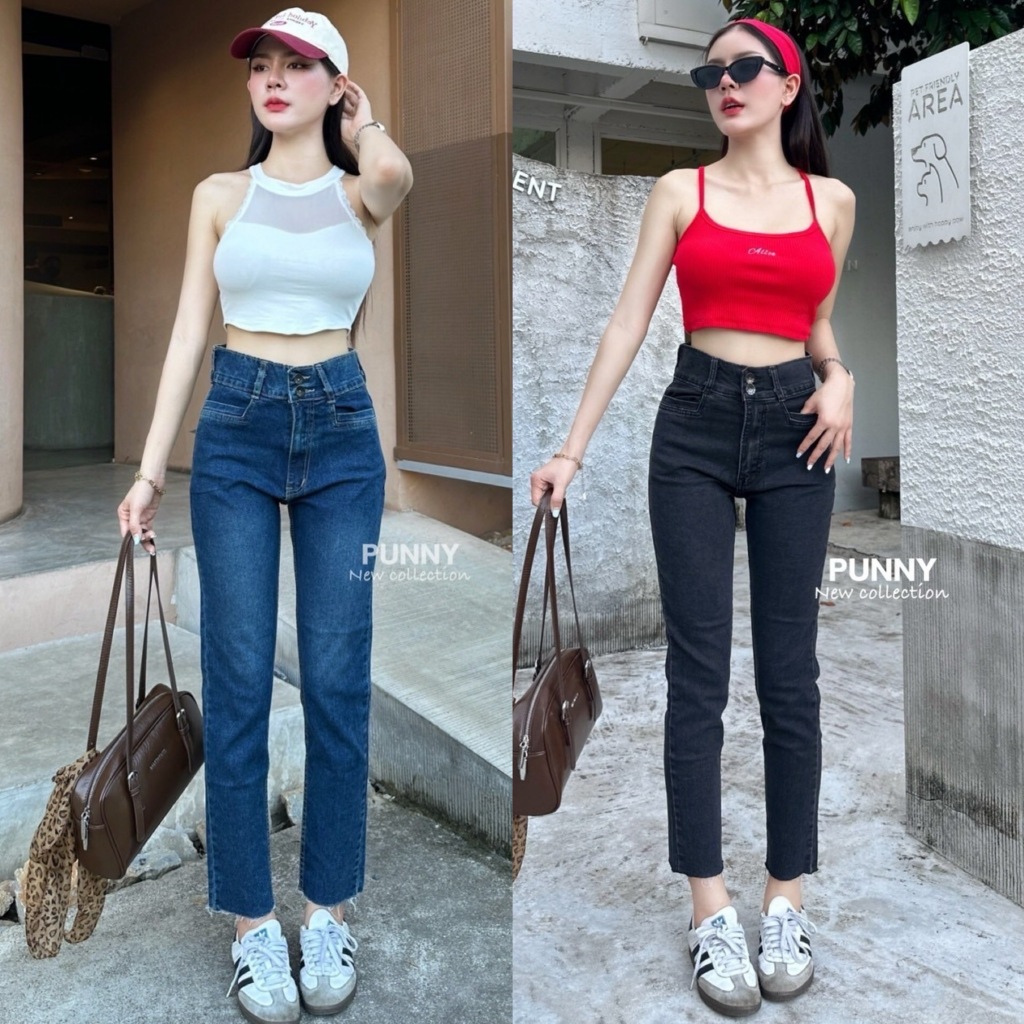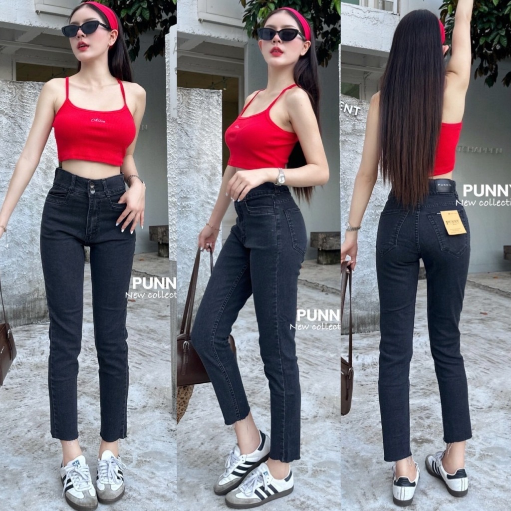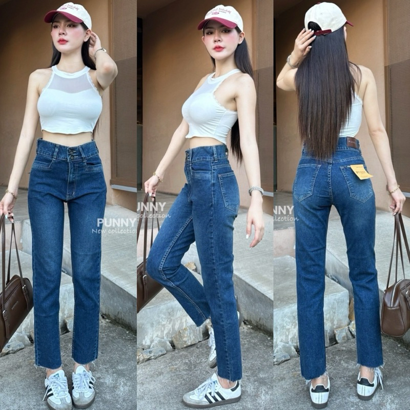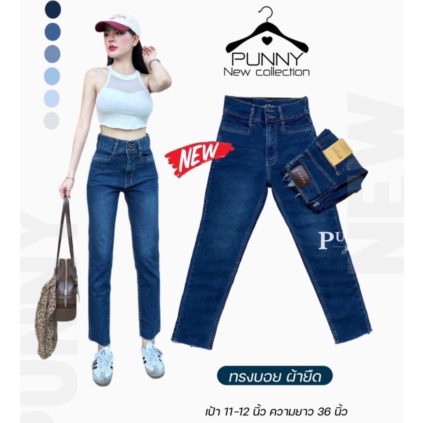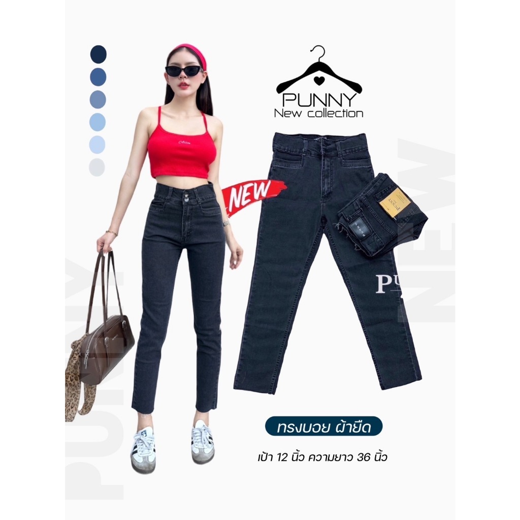 PUNNY Jeans กางเกงยีนส์ ทรงบอย ผ้านิ่มยืด
