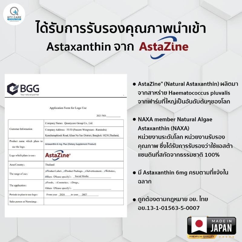 QTYCARE Astaxanthin Plus จากญี่ปุ่น สาหร่ายสีแดง ราชินีสารต้านอะนุมูลอิสระ