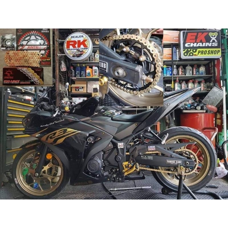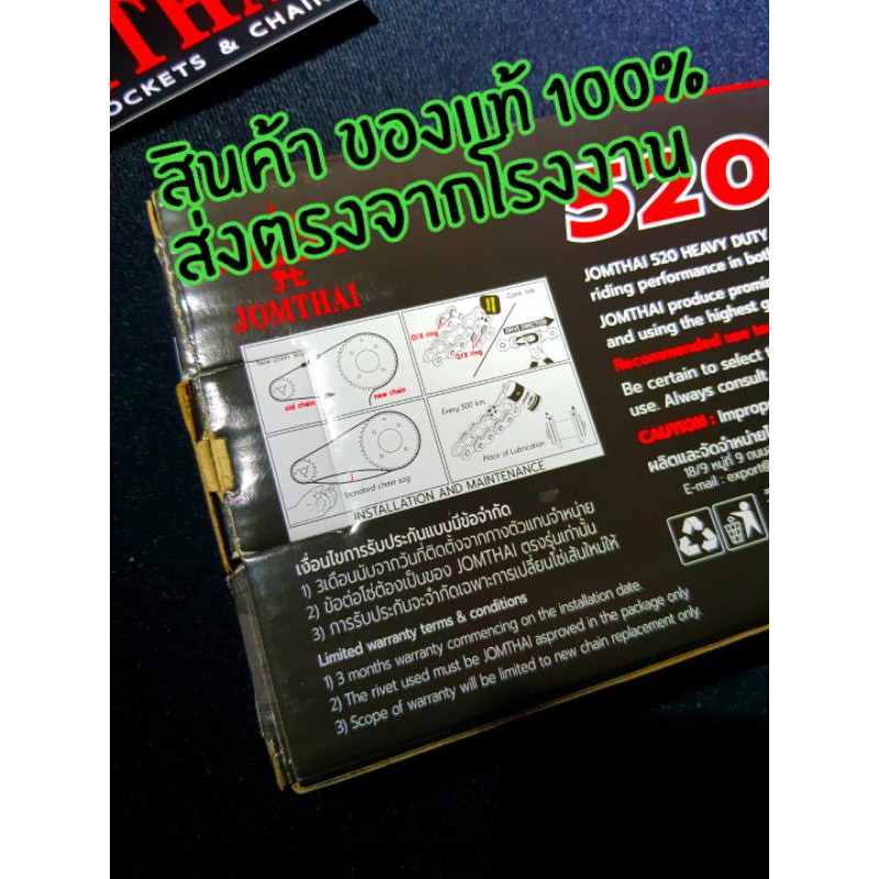 Jomthai Spockets & Chains สเตอร์ทนทานผลิตจากวัสดุ High Carbon และ ยางซับเสียงแบบ ยูริเทน เงียบทุกการใช้งาน และ สเตอร์หลังรูปแบบใหม่ ลาย Ex- Pro series น้ำหนักเบา ลวดลายสวยงามทันสมัย โซ่แบบ ข้อหนา ข้อต่อแถมกิ้บและย้ำ