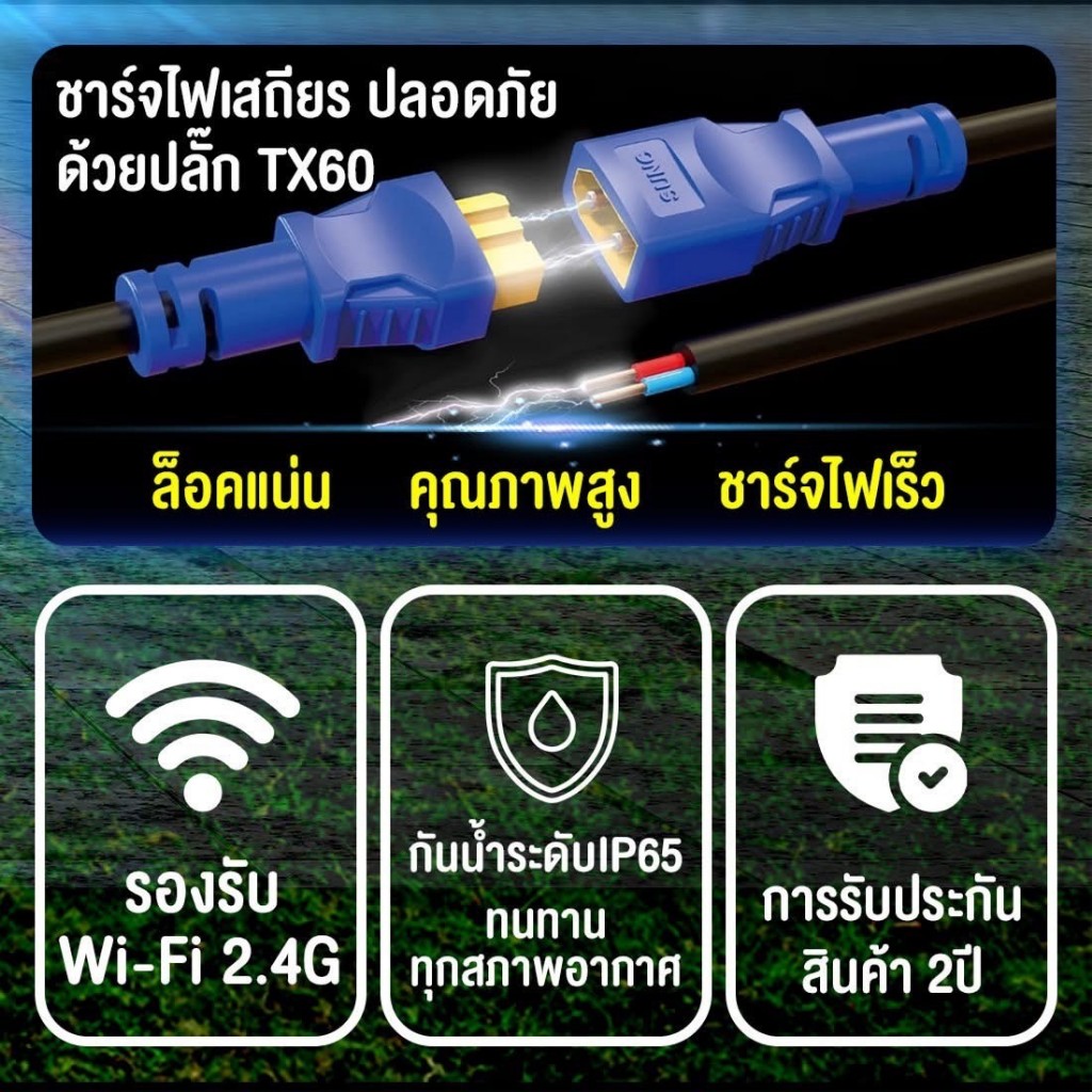– อัพเกรดปลั๊กและสายไฟ แน่นหนา ปลอดภัยขึ้น TX60 มีล็อคแน่นหนา สายไฟหนาขึ้น 30% ชาร์จไฟเสถียรและรวดเร็วยิ่งขึ้น สายไฟยาว 270 Cm.