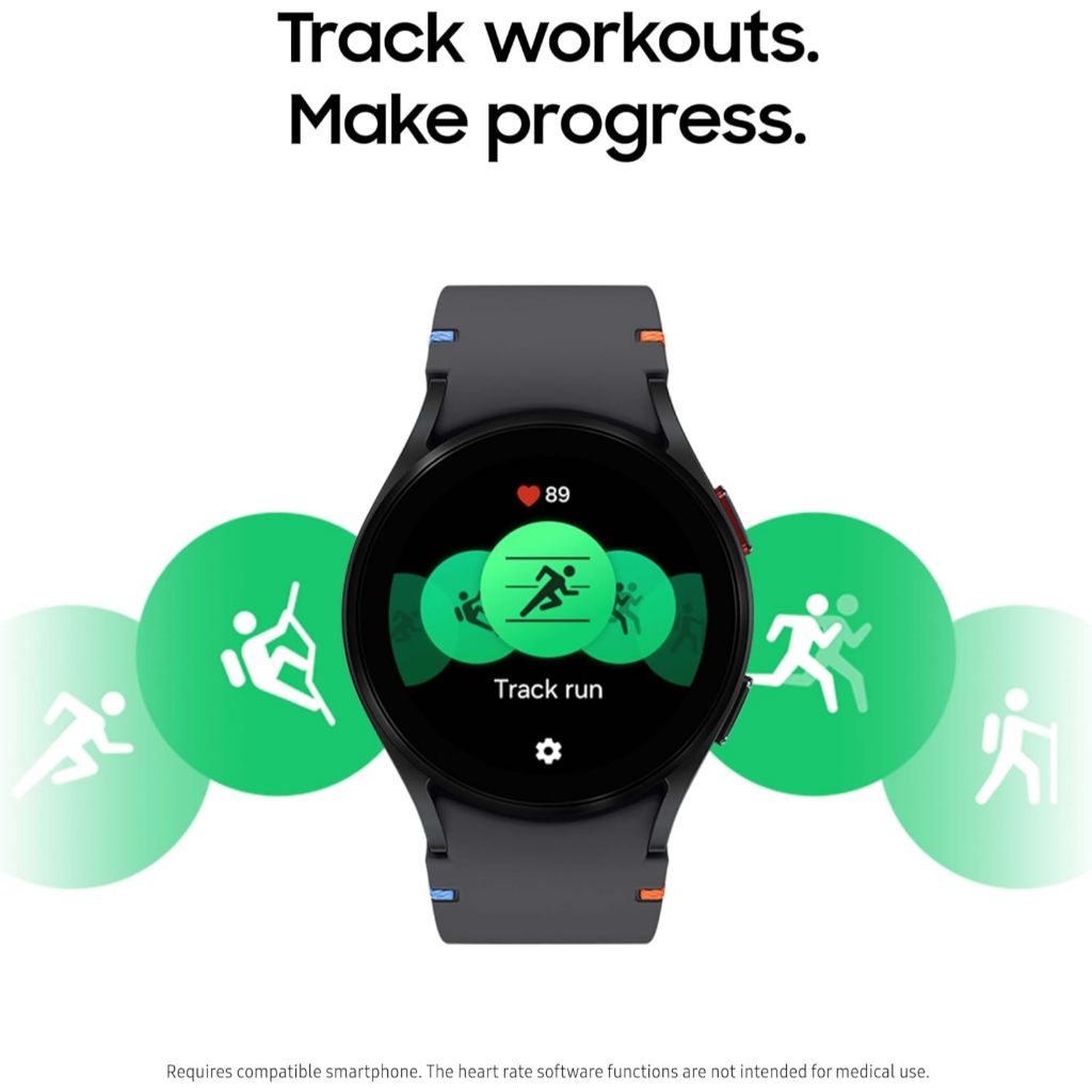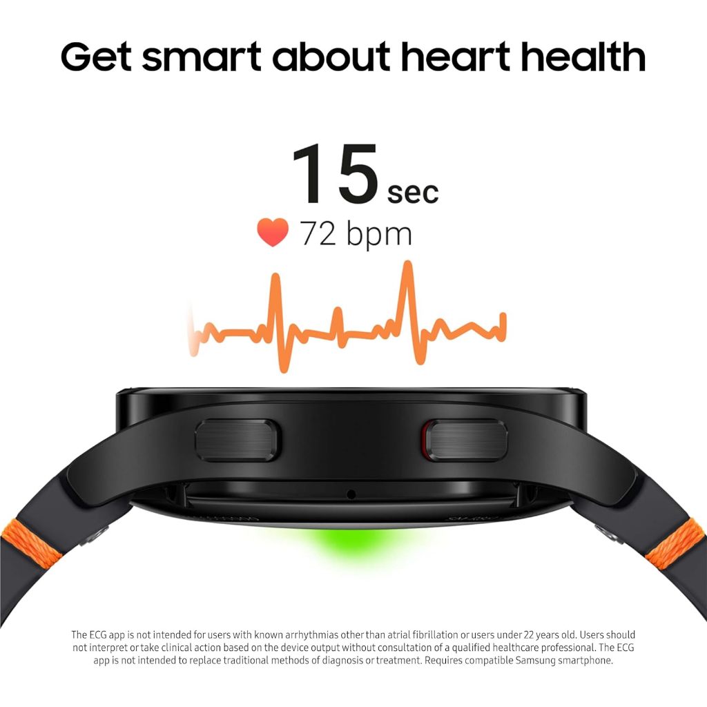 SMART HEART MONITORING : Galaxy Watch FE helps you keep an eye on your heart with ECG Monitoring & periodic heart rate measurements to detect irregularities⁴; Get a step ahead of your health by sharing these personalized readings with your doctor