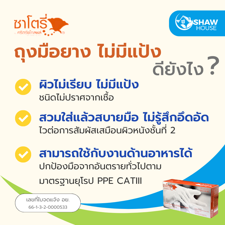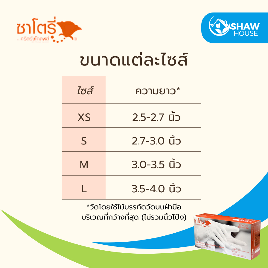 Satory ถุงมือยาง ซาโตรี่ ชนิดไม่มีแป้ง