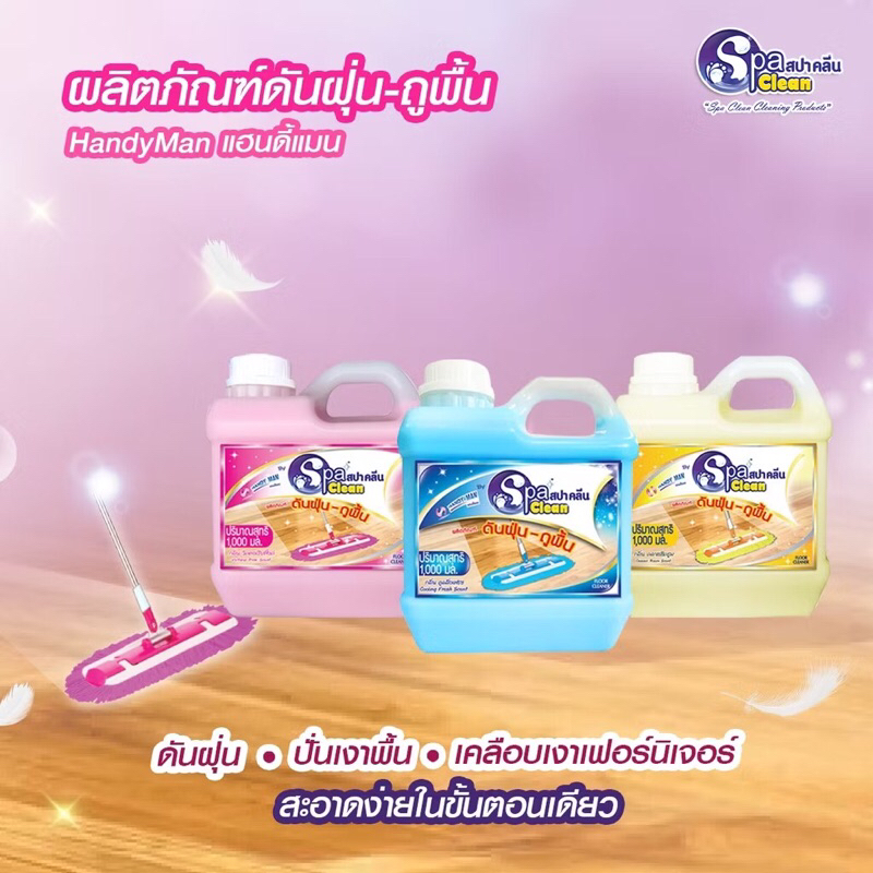 Spa clean น้ำยาดันฝุ่น ปริมาณสุทธิ 1000 มล. ถูพื้น ดันฝุ่น ช่วยให้พื้นไม่ติดฝุ่น เพิ่มความเงาให้พื้นผิว เคลือบเงา