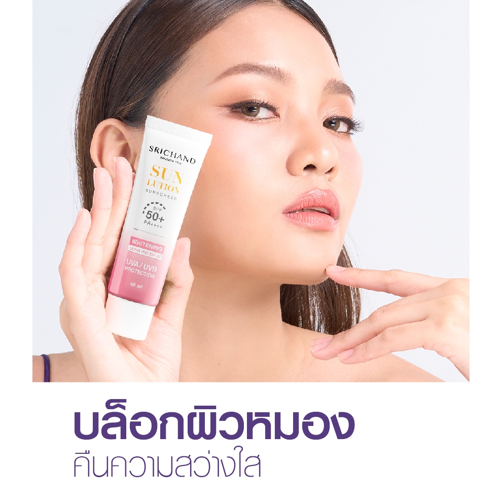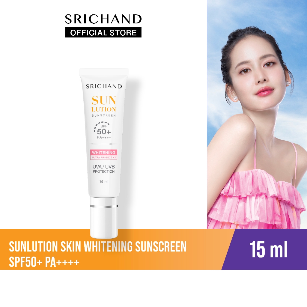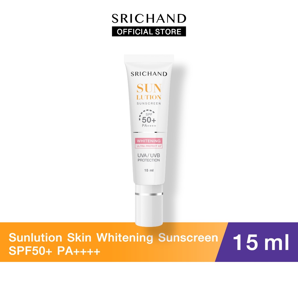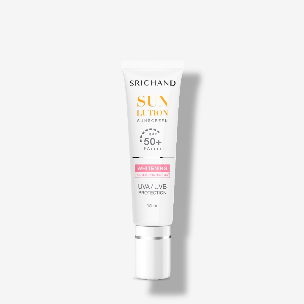 SRICHAND กันแดดสกินแคร์ สูตรผิวขาวกระจ่างใส ซันลูชั่น สกิน ไวท์เทนนิ่ง ซันสกรีน เอสพีเอฟ 50+ พีเอ++++ ขนาด 15 มล.