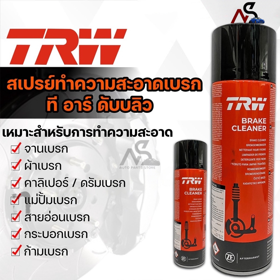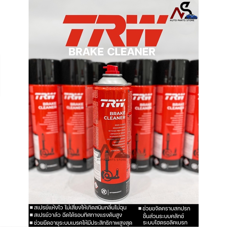สเปรย์ระบบเบรก TRW สเปรย์ที่จะทำให้การทำความสะอาดระบบเบรก รวดเร็ว สะอาด และปลอดภัยมากกว่าเดิม จบปัญหา ฝุ่นคลุ้งจากการเป่าลม เสี่ยงสนิม จากการล้างน้ำ หรือกินยาง ด้วยน้ำยาสูตรพิเศษที่ถูกบรรจุในกระป๋องหัวฉีดแรงดันสูง