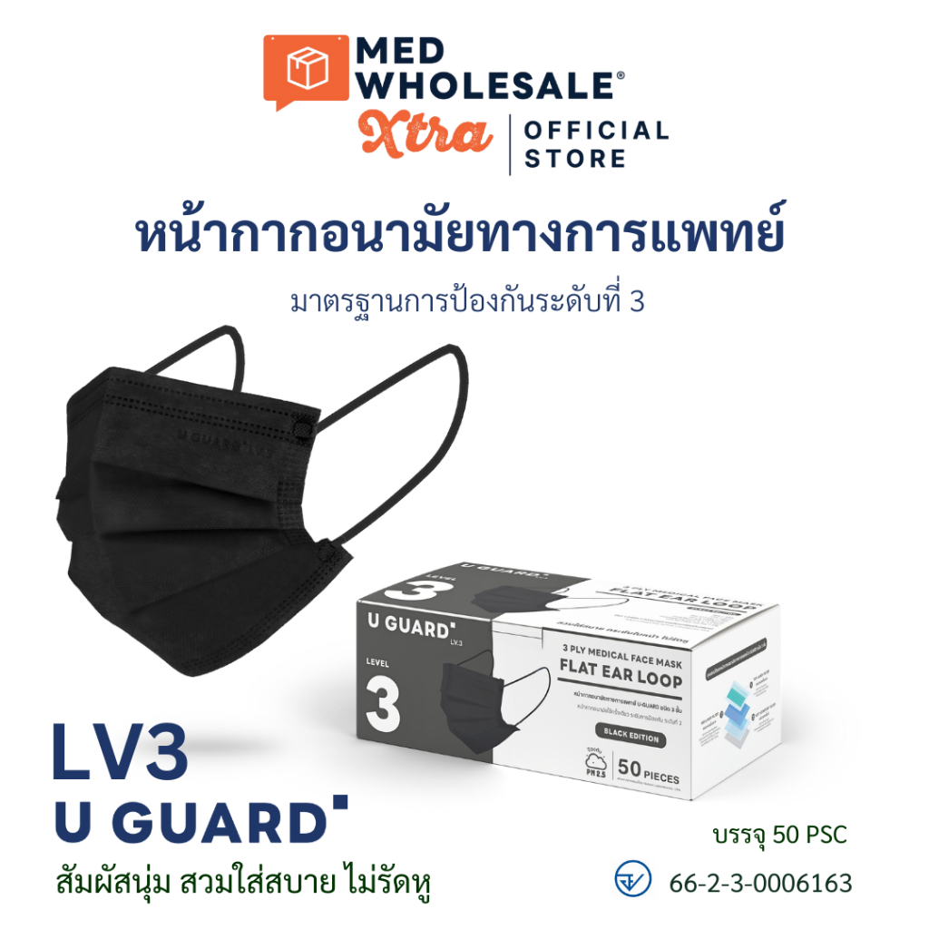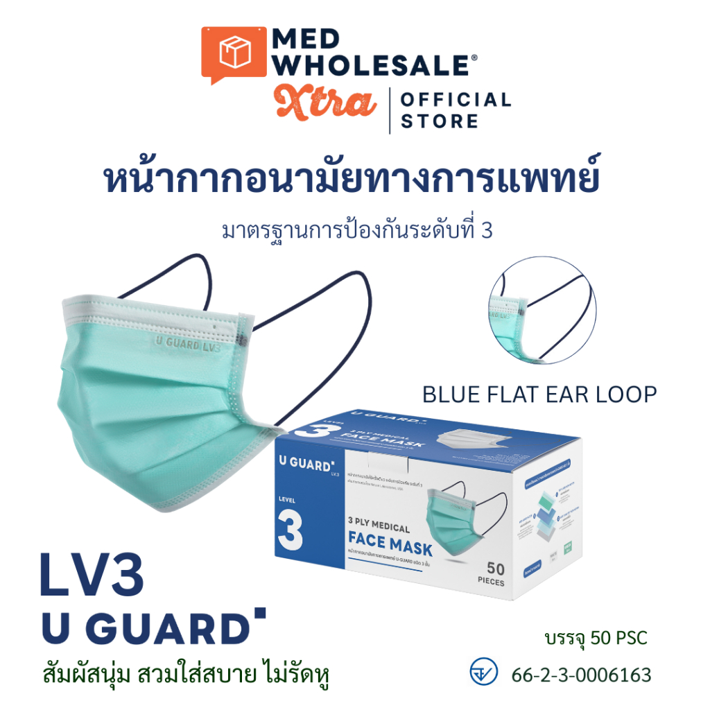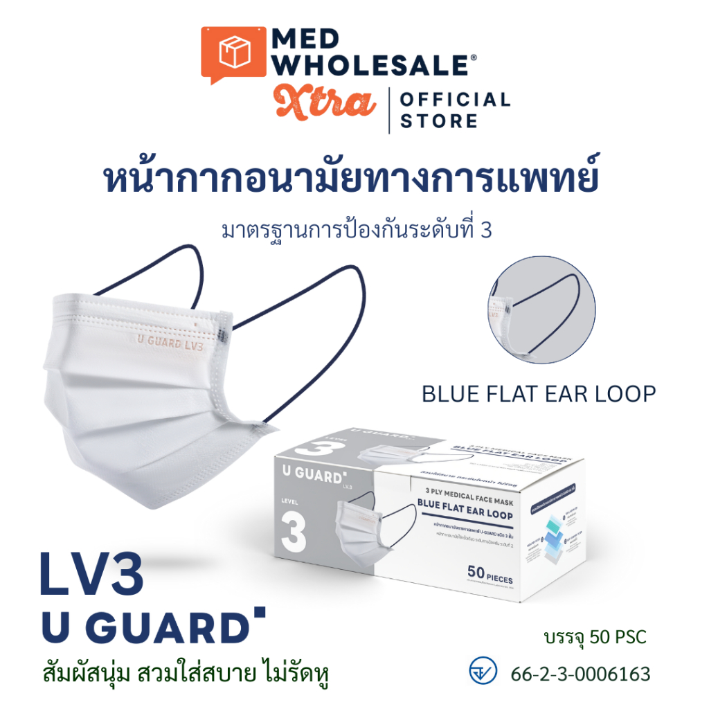 ชื่อสินค้า :U-GUARD MASK หน้ากากอนามัย 3 ชั้น LV.3 สีขาวหูน้ำเงิน