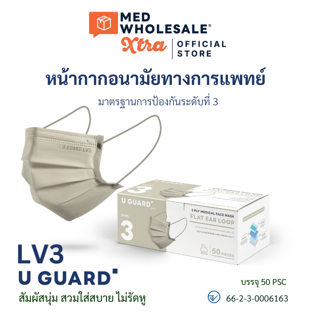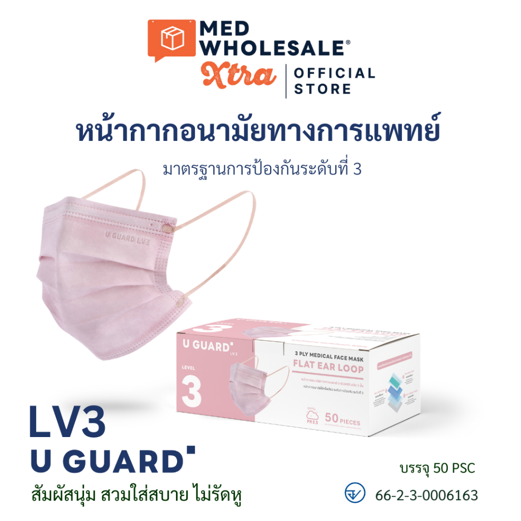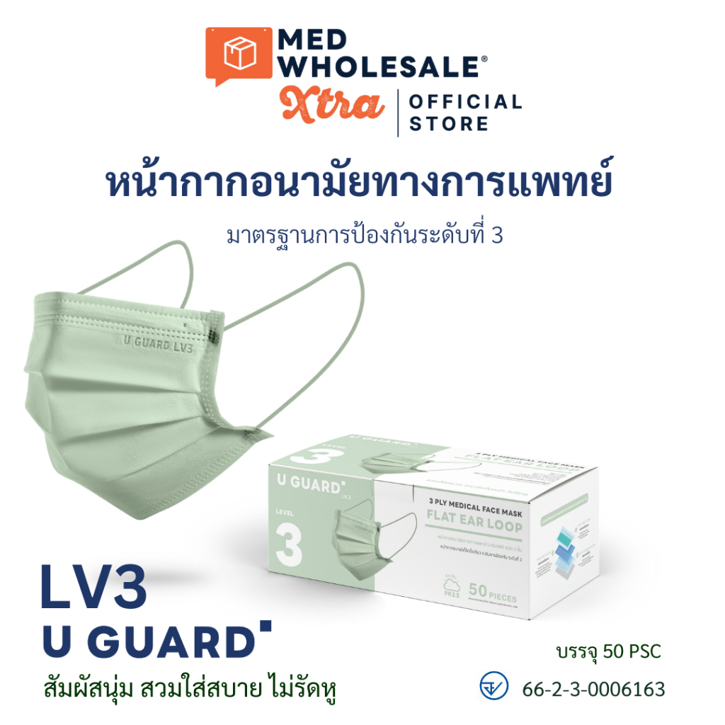 ชื่อสินค้า :U-GUARD MASK หน้ากากอนามัย 3 ชั้น LV.3 สีขาวหูน้ำเงิน
