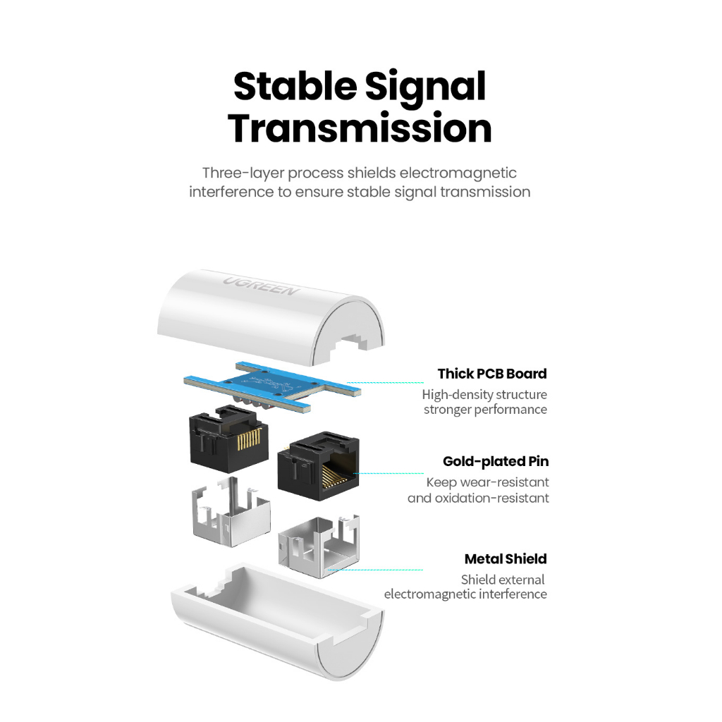 UGREEN หัวต่อเพิ่มความยาวสายแลน RJ45 Female to Female Connector Network Cable รุ่น NW116
